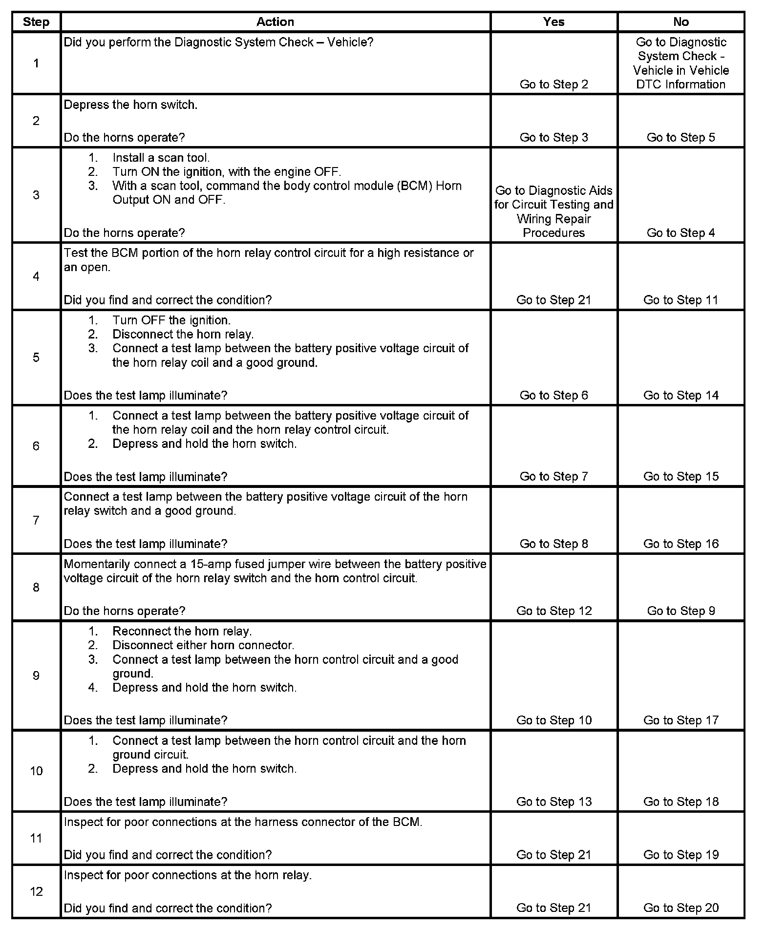15. The horn relay control circuit includes the horn slip ring and the horn switch. The horn slip ring and the horn switch must be tested for a high resistance, an open or a short to voltage when testing the relay control circuit.