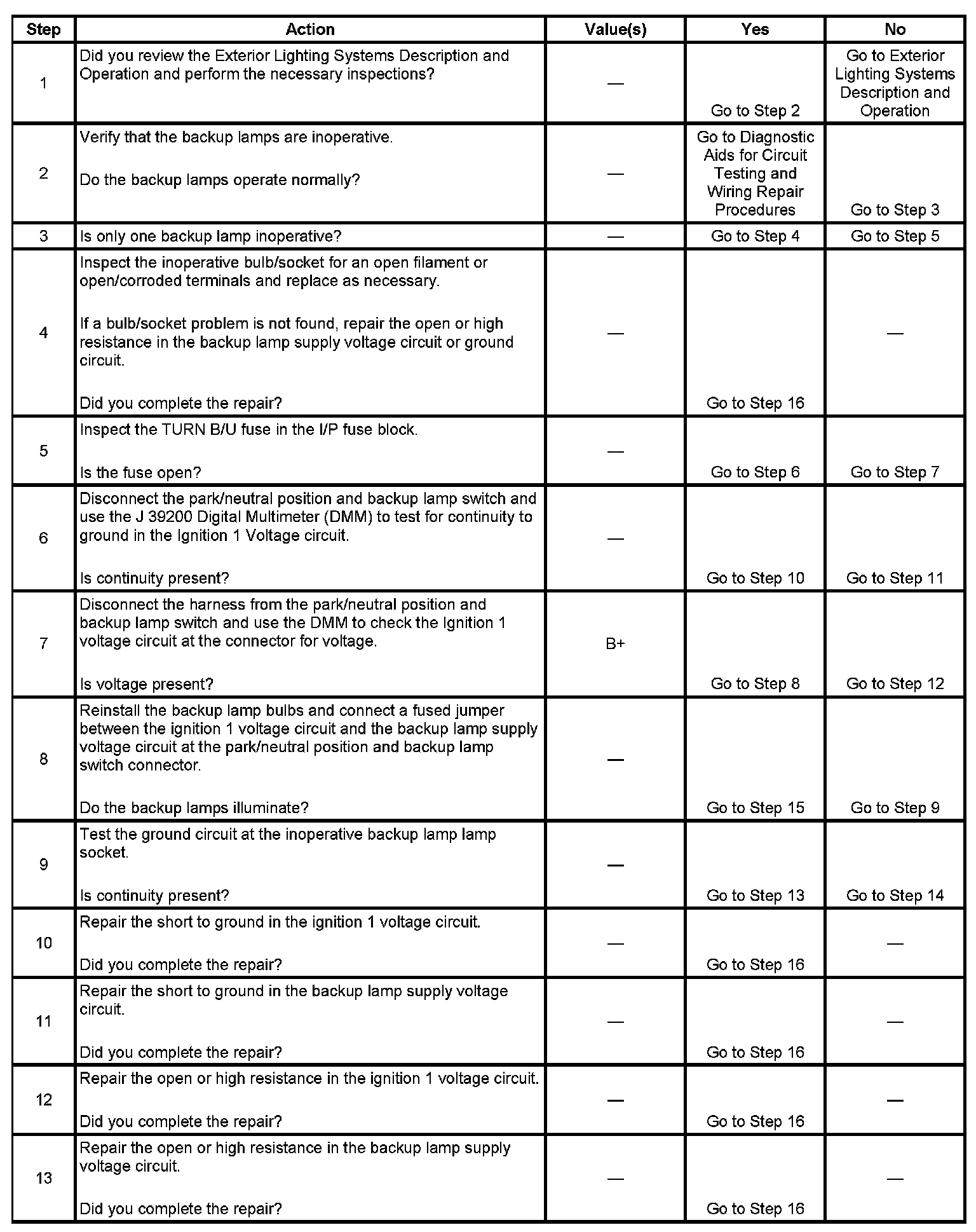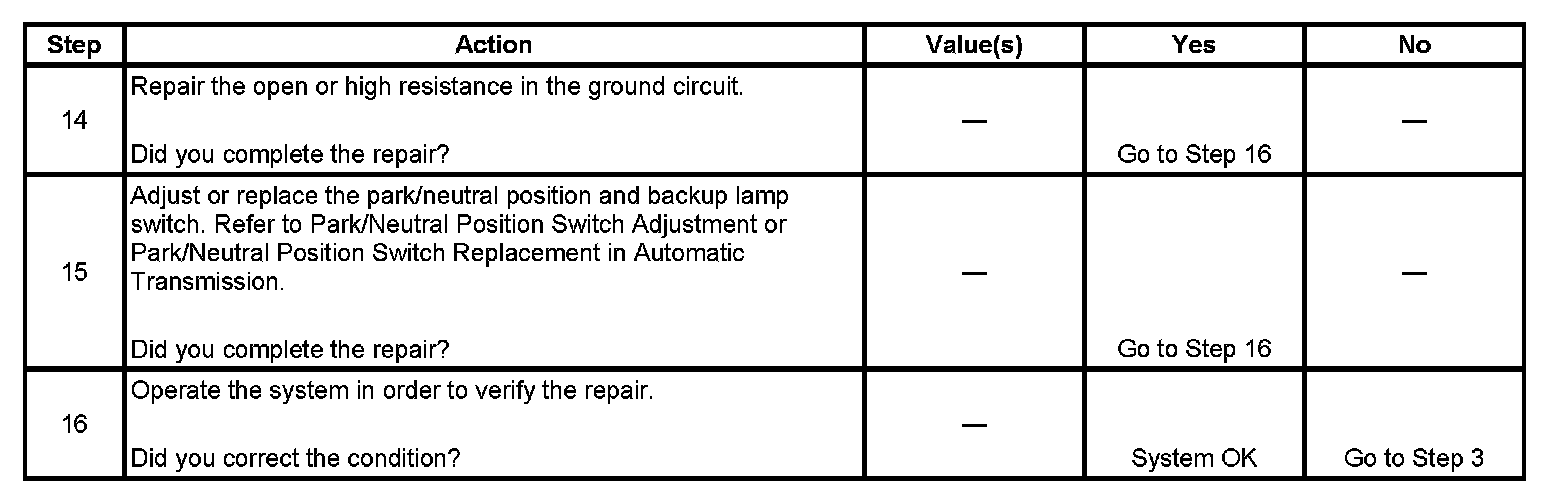 Backup Lamps Inoperative
