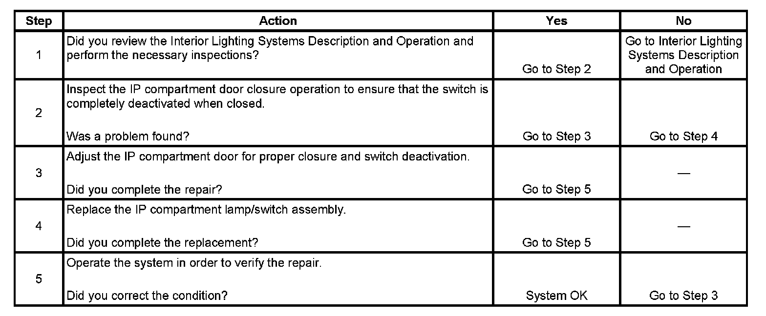 Instrument Panel (I/P) Compartment Lamp Always On