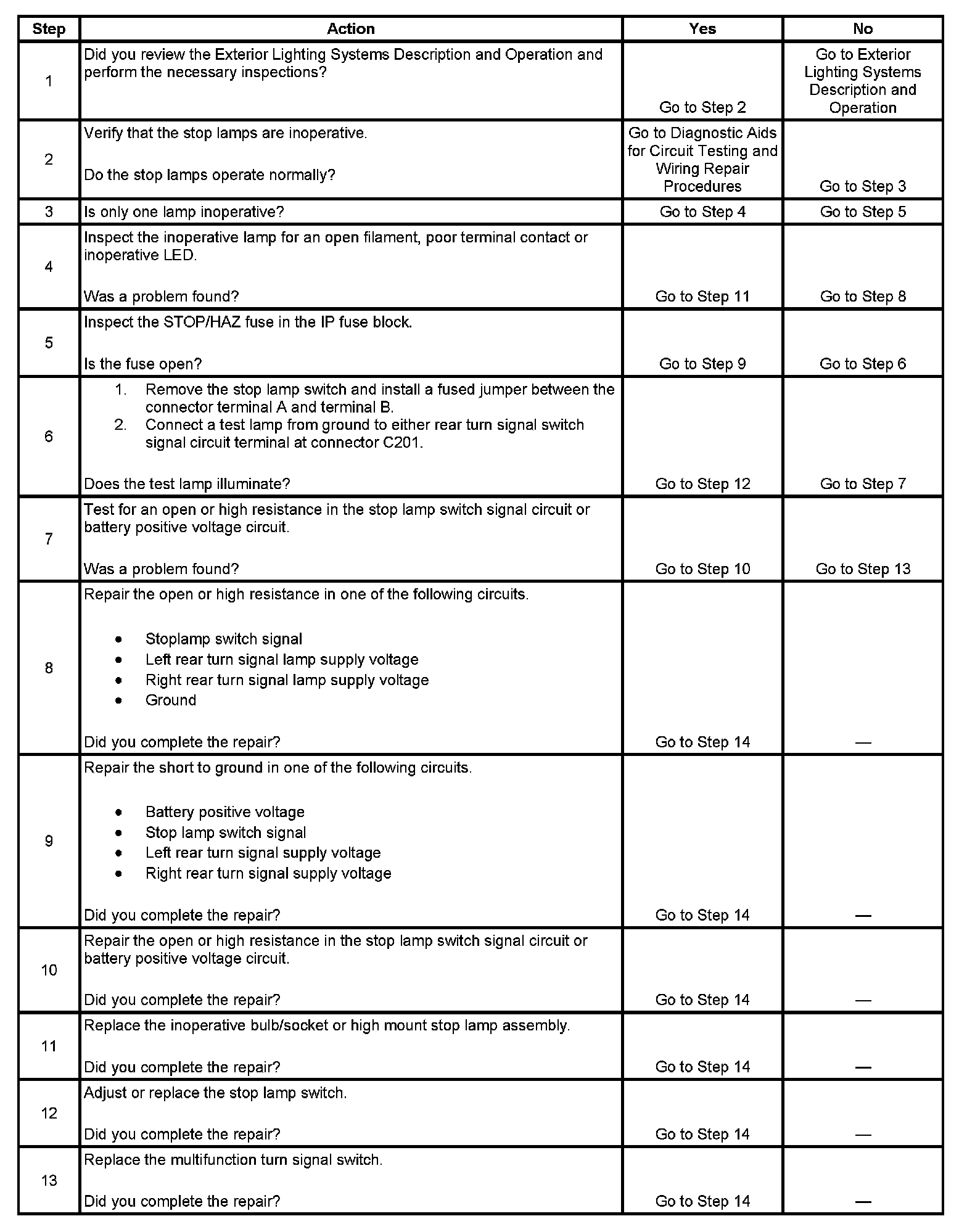 Stop Lamps Inoperative