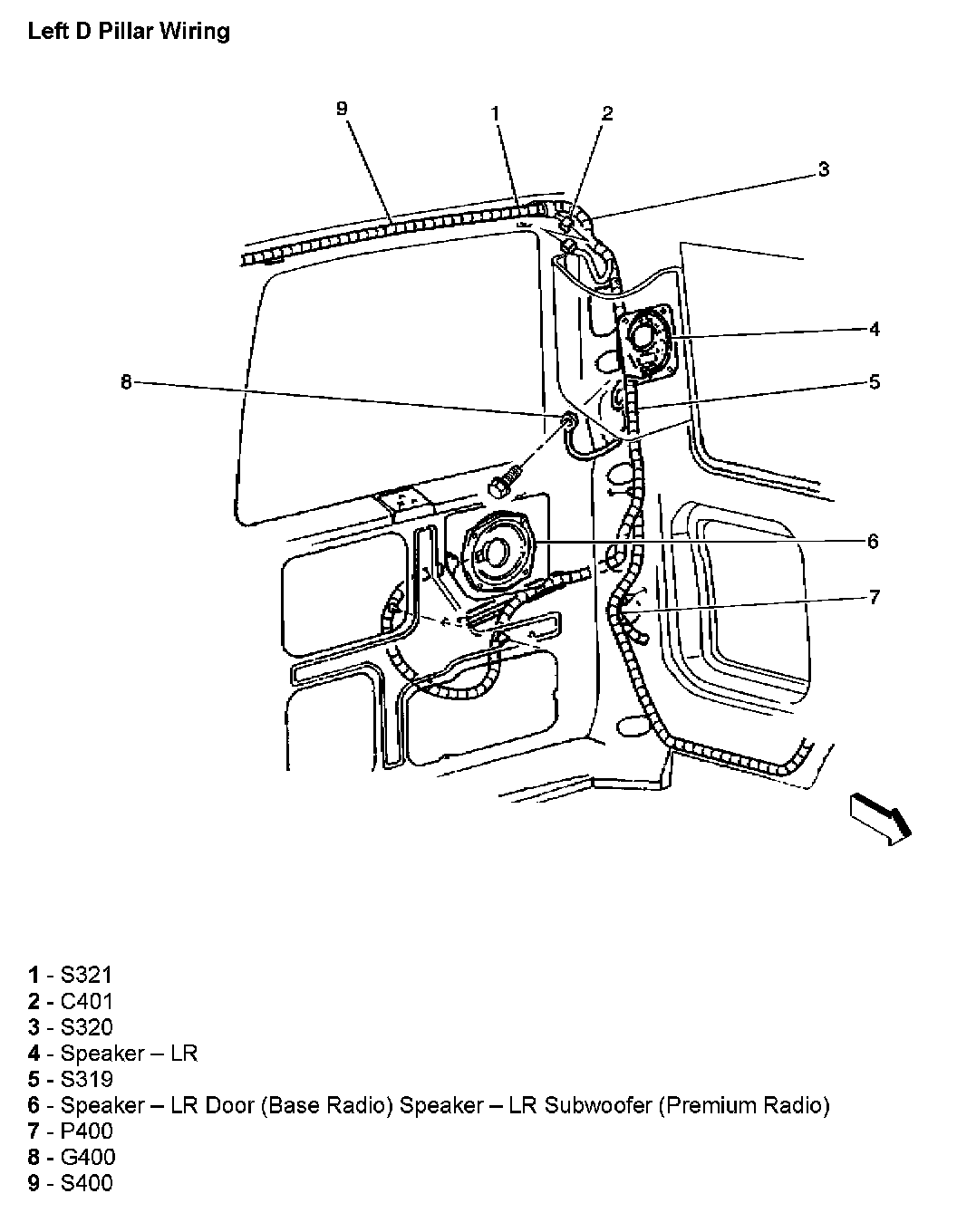 Left D Pillar Wiring: