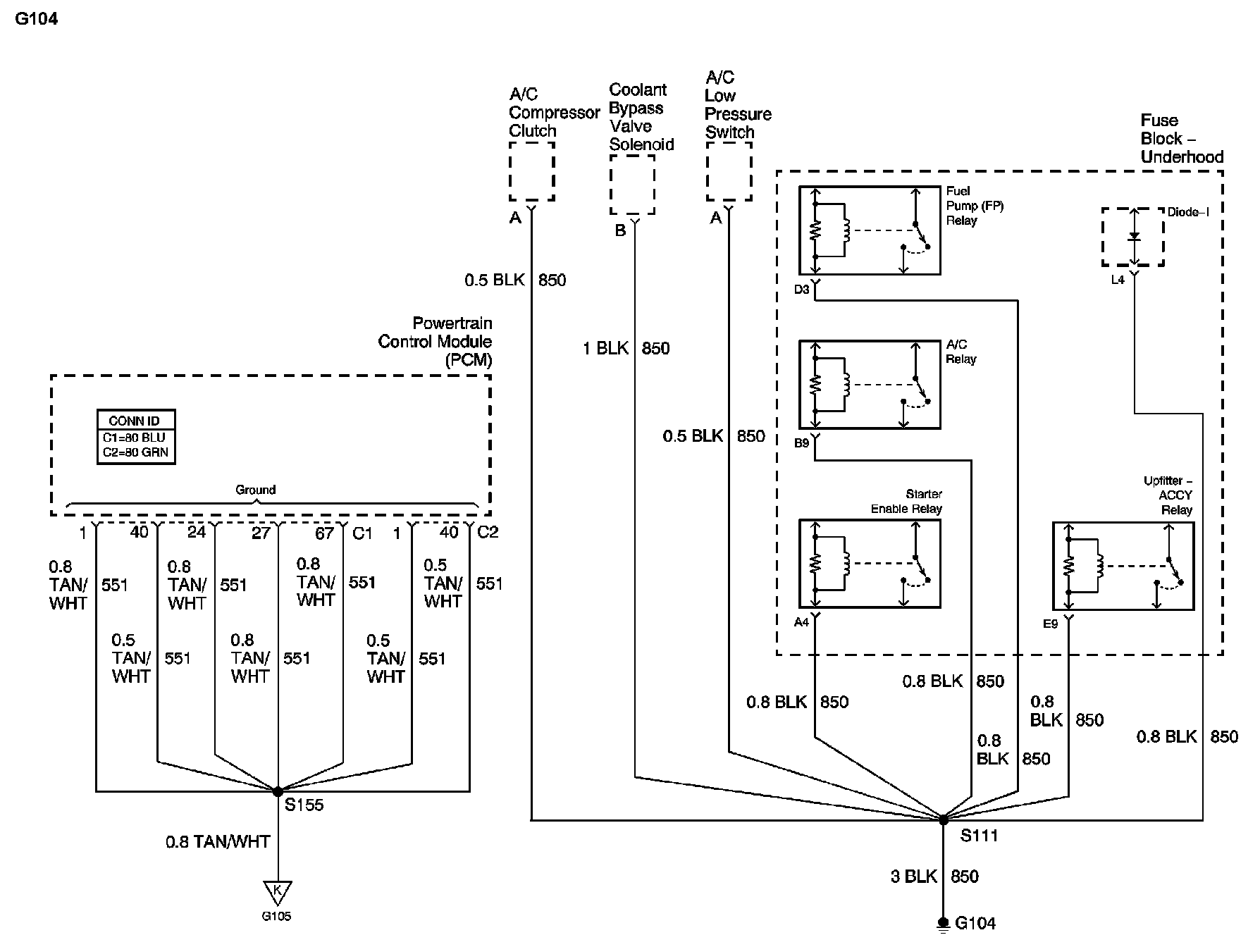 The locations for the Connectors, Grounds, Splices, and Grommets shown within these diagrams can be found via their numbers at Vehicle Locations.