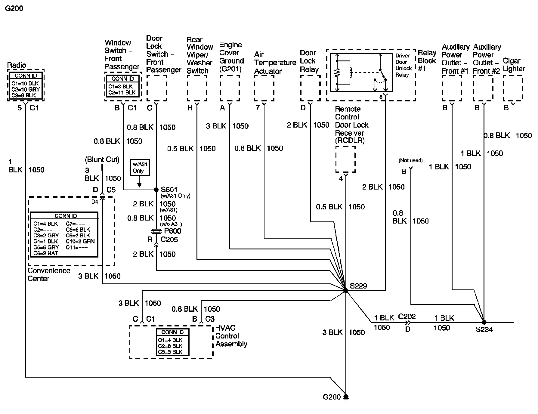The locations for the Connectors, Grounds, Splices, and Grommets shown within these diagrams can be found via their numbers at Vehicle Locations.