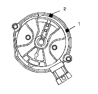 14. Place a second mark on the base of the distributor (2).This will aid in achieving the proper rotor alignment during the distributor installation.