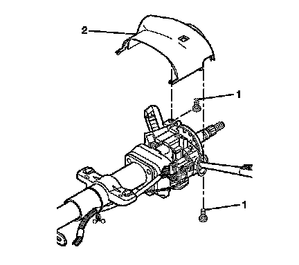5. Remove the upper steering column trim cover (2) mounting screws (1).