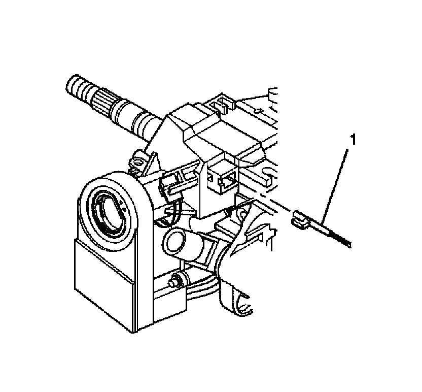 ^ The locking tab at the end of the park lock cable assembly (1) must be installed into the ignition lock cylinder case.