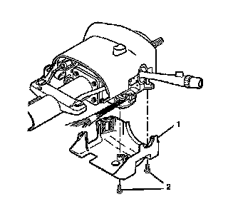 8. If necessary, remove the trim cover protector (1) from the lower trim cover (2).