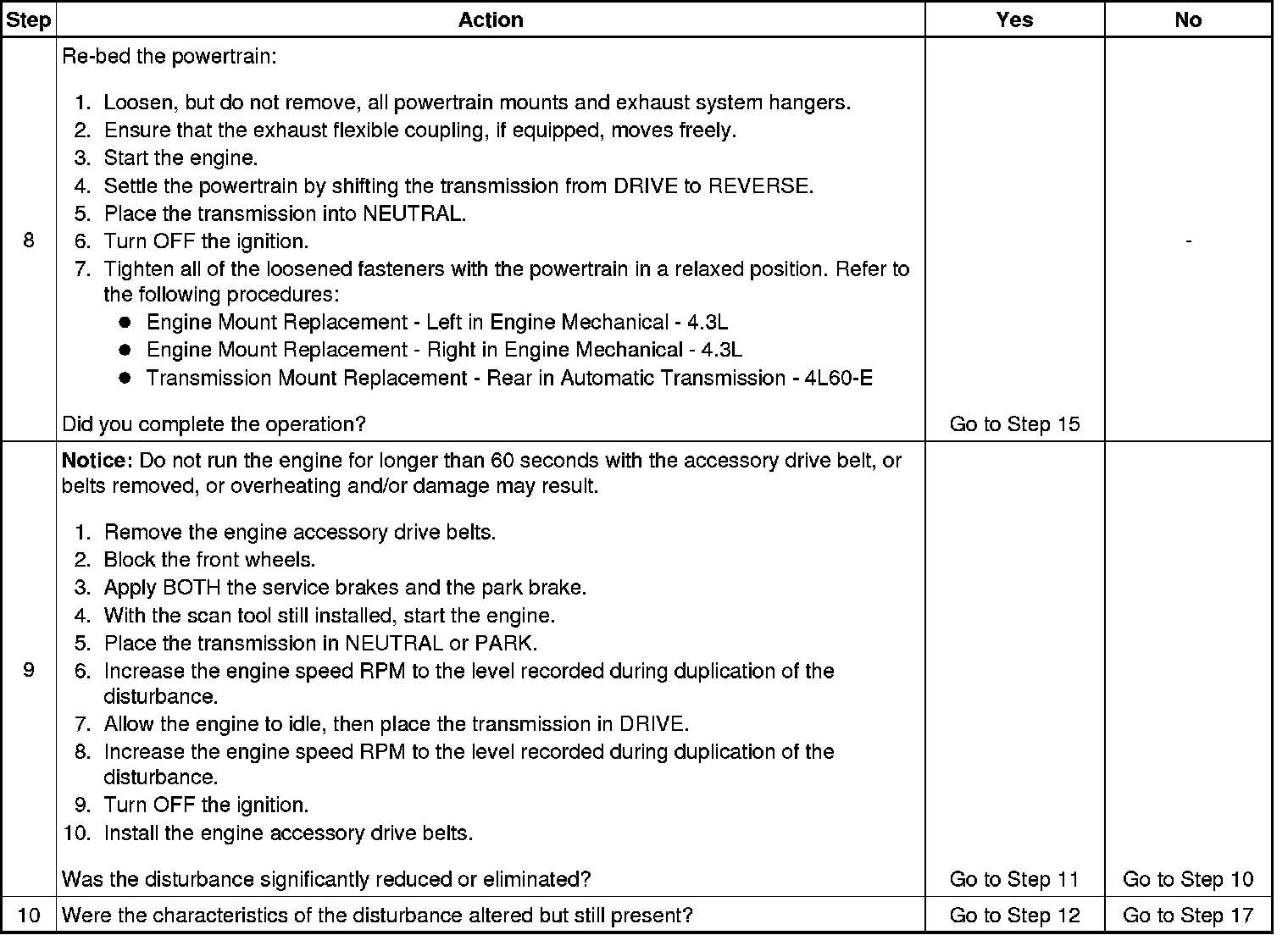 When loosening powertrain mounts in order to re-bed the powertrain observe the following: