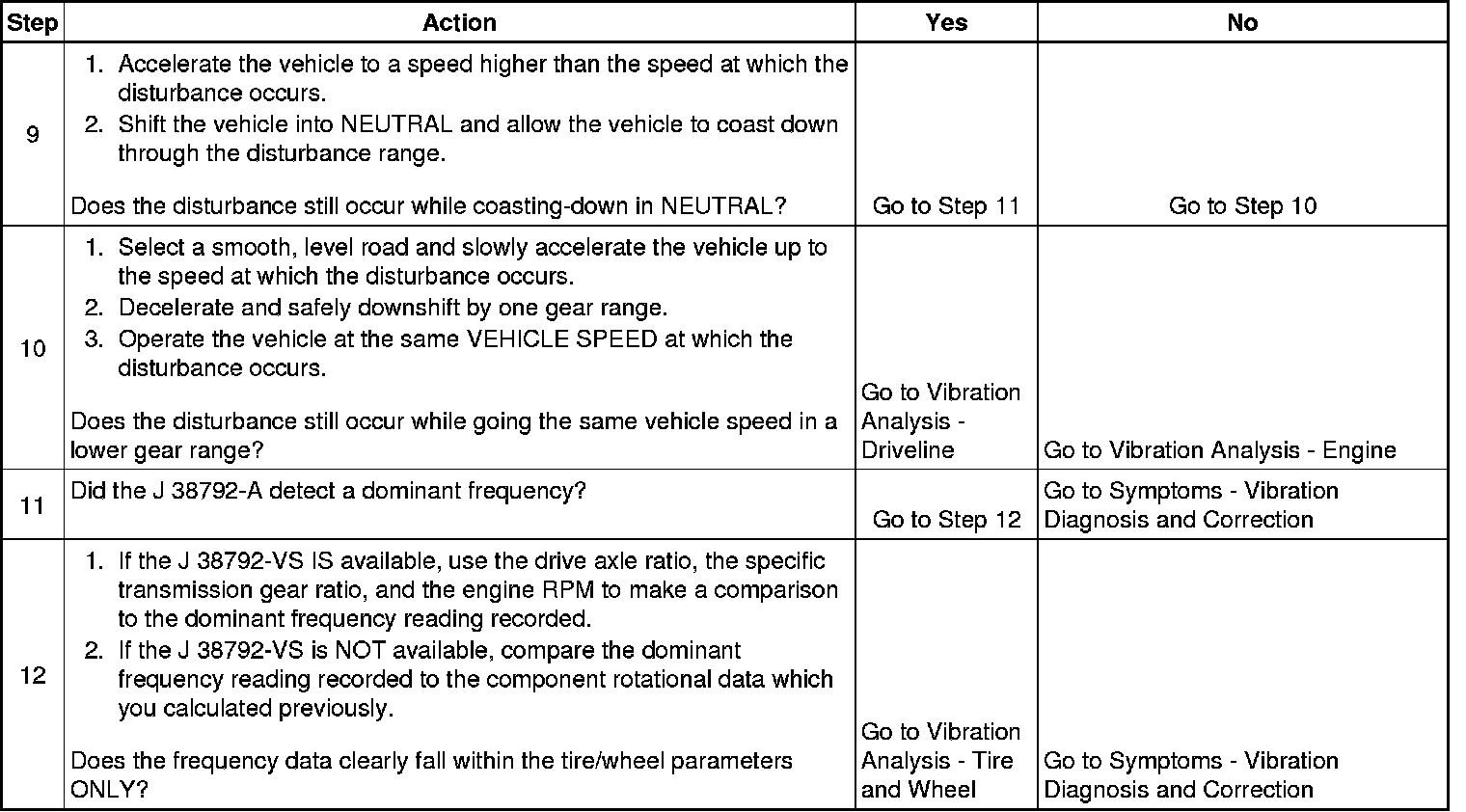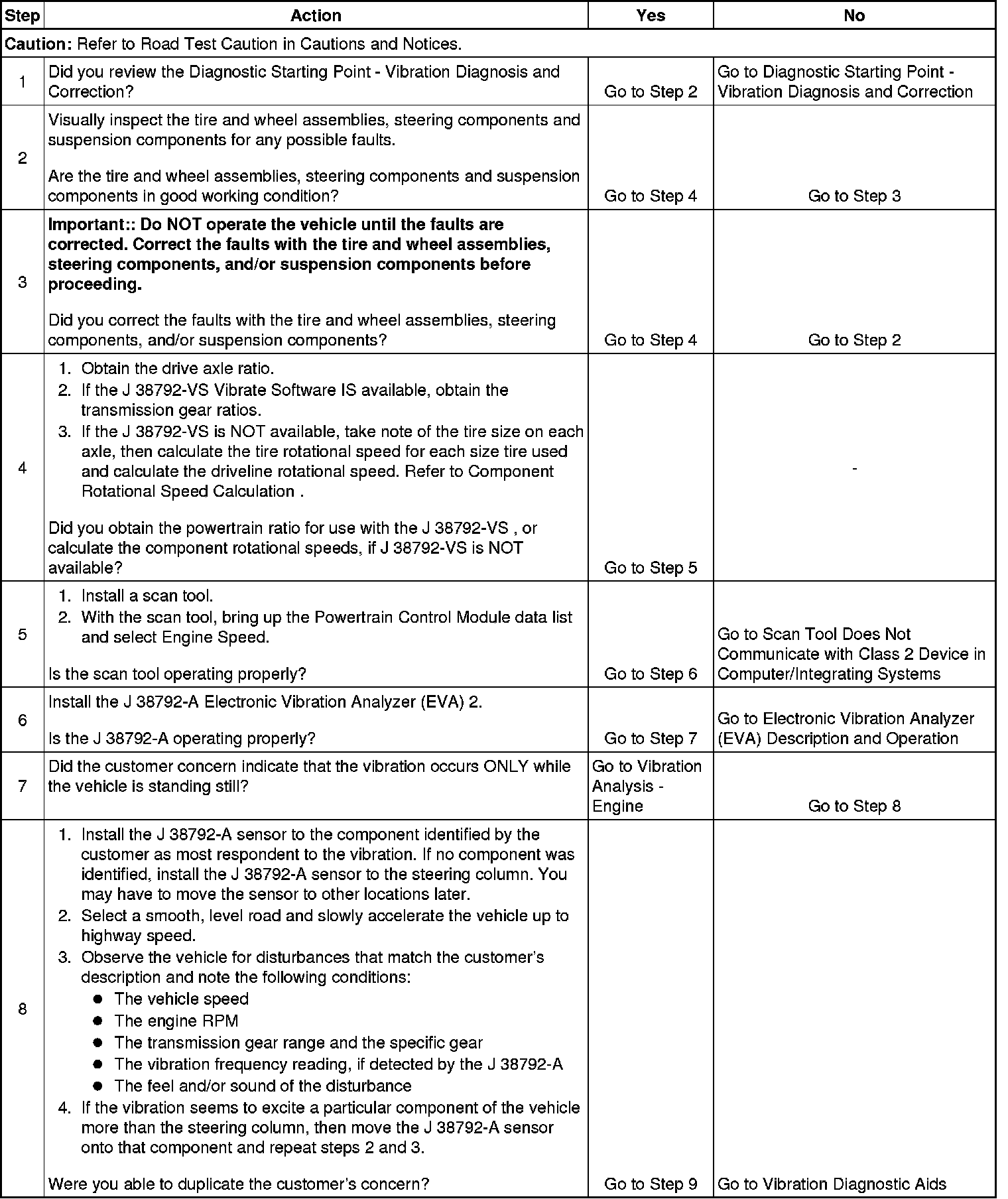 4. Obtaining rotational speed for the components rotating at both tire/wheel speed and driveline speed is critical to systematically eliminating specific vehicle component groups. These component rotational speeds can be generated by using the J 38792-VS Vibrate Software or through calculating them manually.