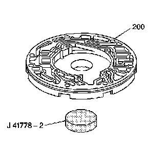 4. Using the J 41778-1 with an arbor press, remove the pump body bushing (242).