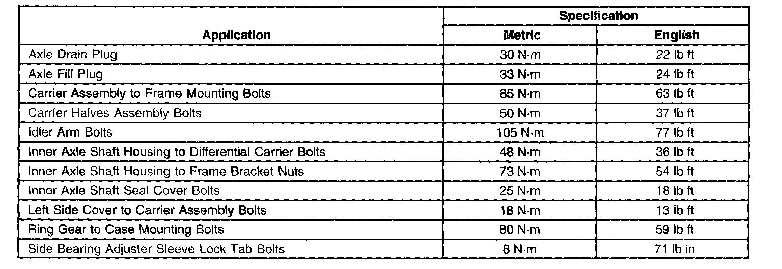 Fastener Tightening Specifications: