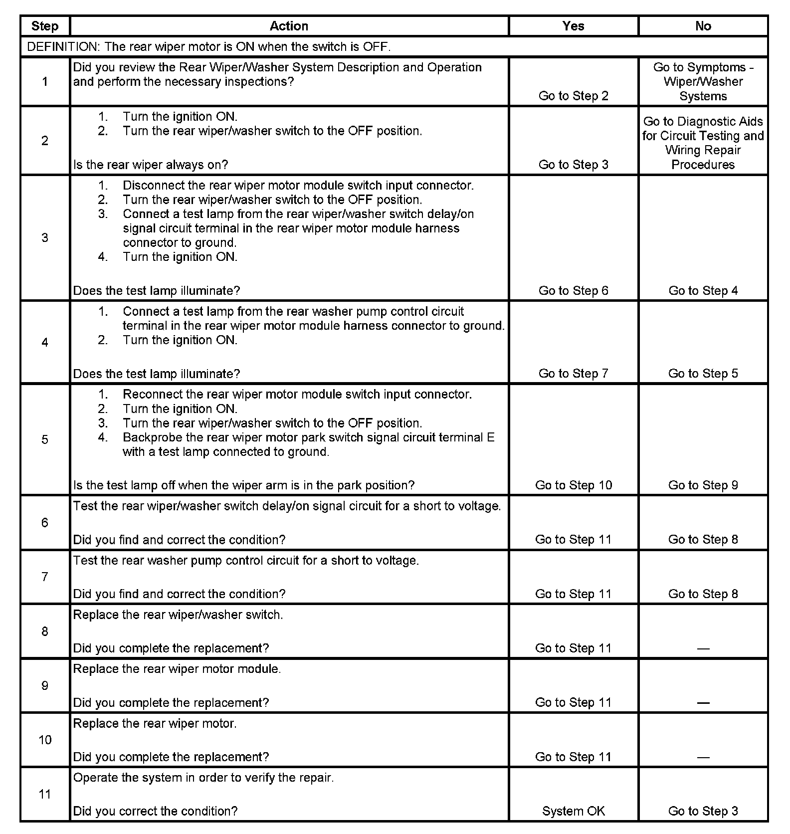 Wiper Always On - Rear