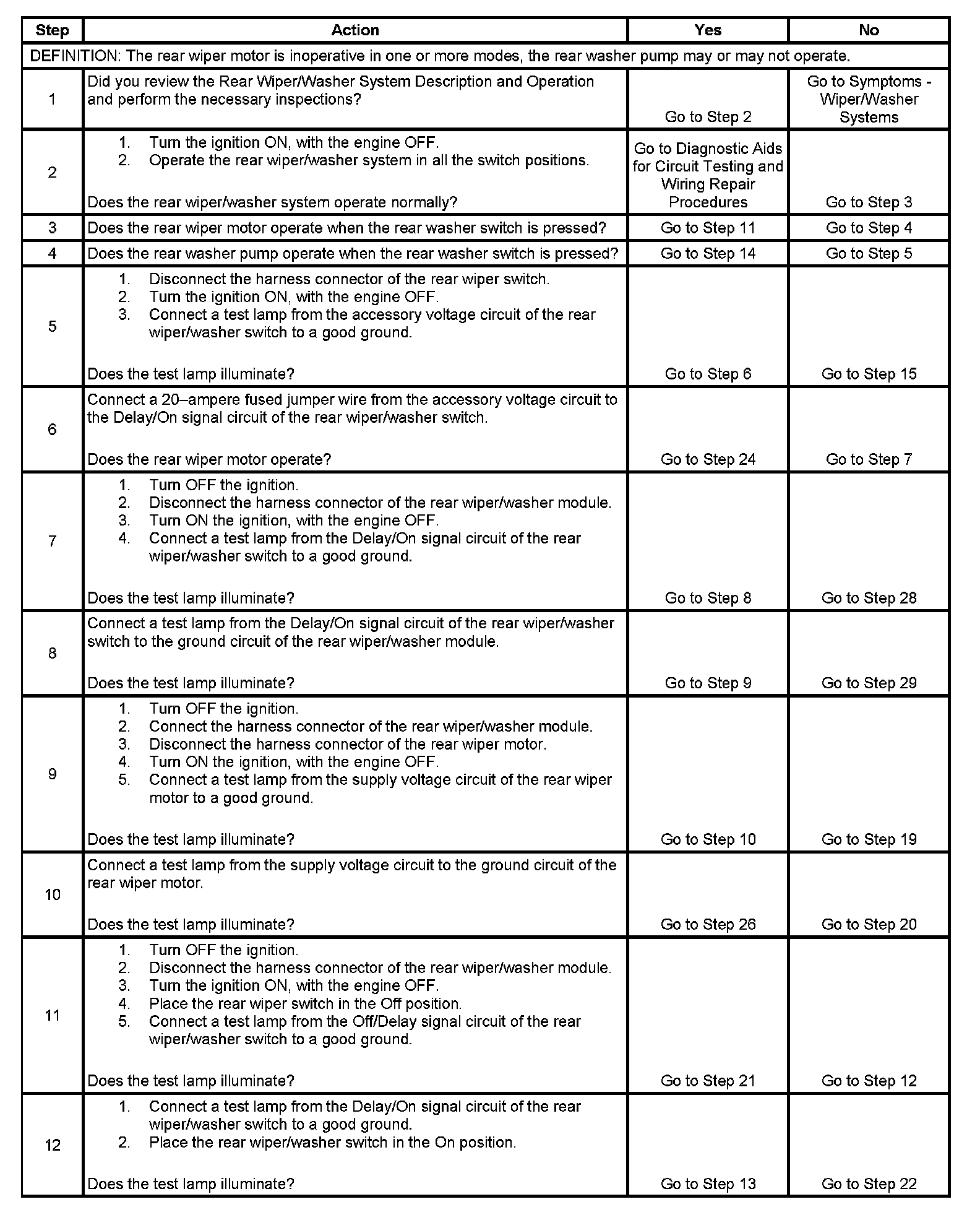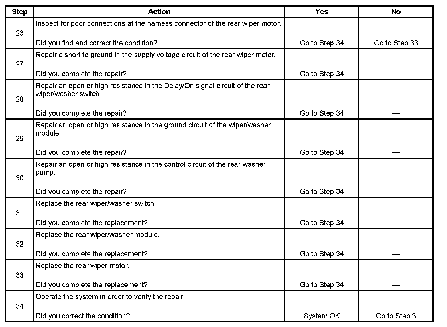 Wiper Inoperative - Rear