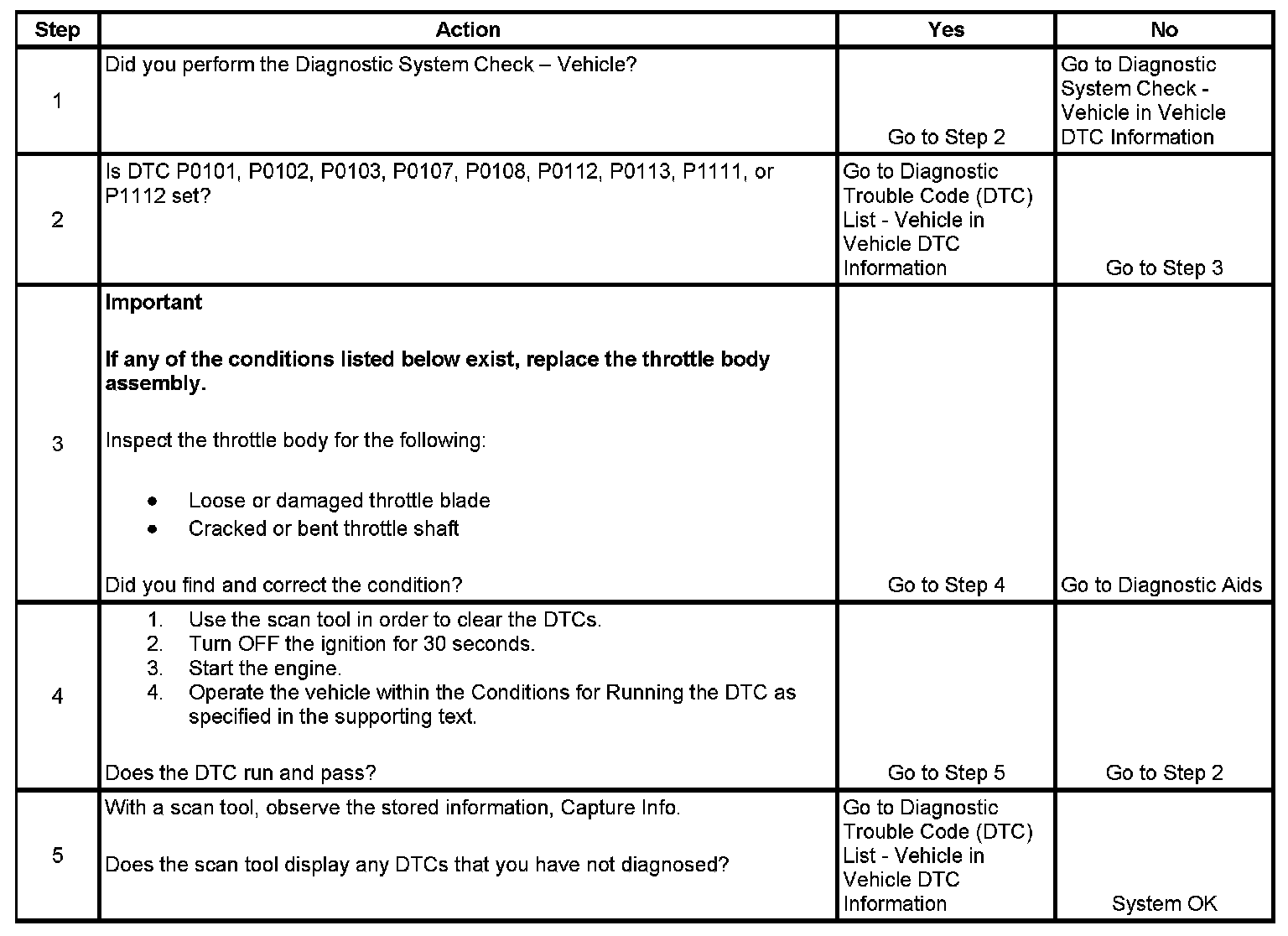 - Physically and visually inspect the throttle body assembly and correct any problems that you observe. Manually move the throttle blade from closed to wide open throttle (WOT). You should not need to use excess force. The throttle blade should move smoothly through the full range and then should independently return to a slightly open position.
