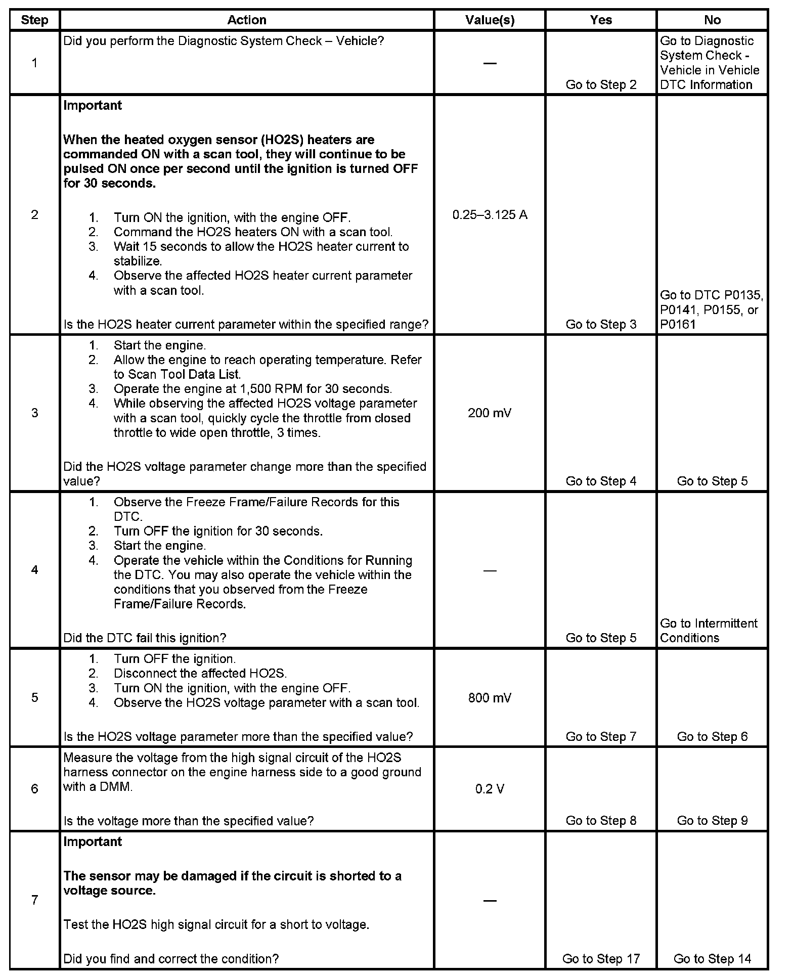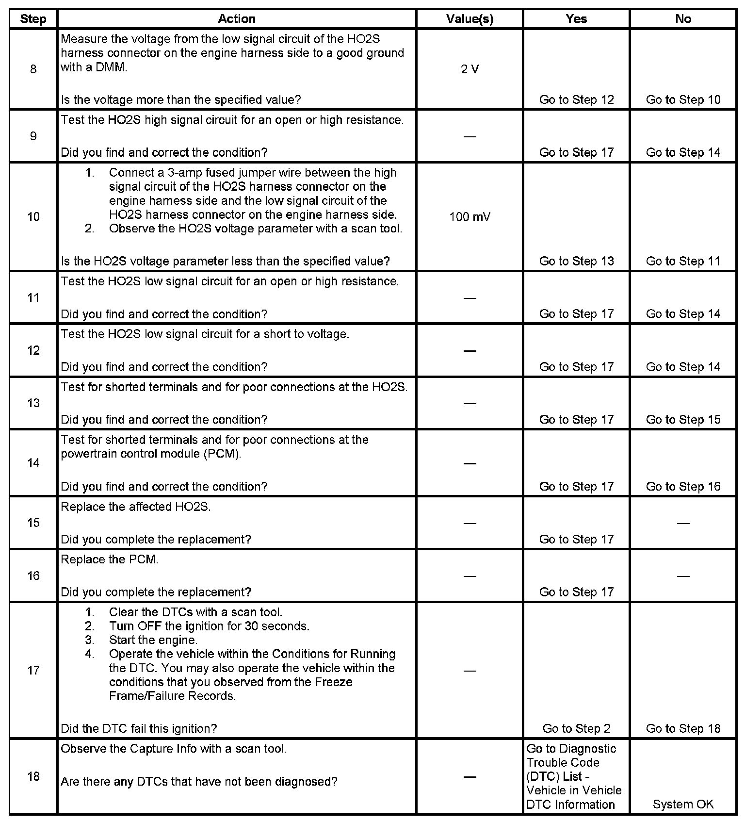 - The PCM detects that the affected HO2S voltage parameter is between 410-490 mV for 150 seconds.