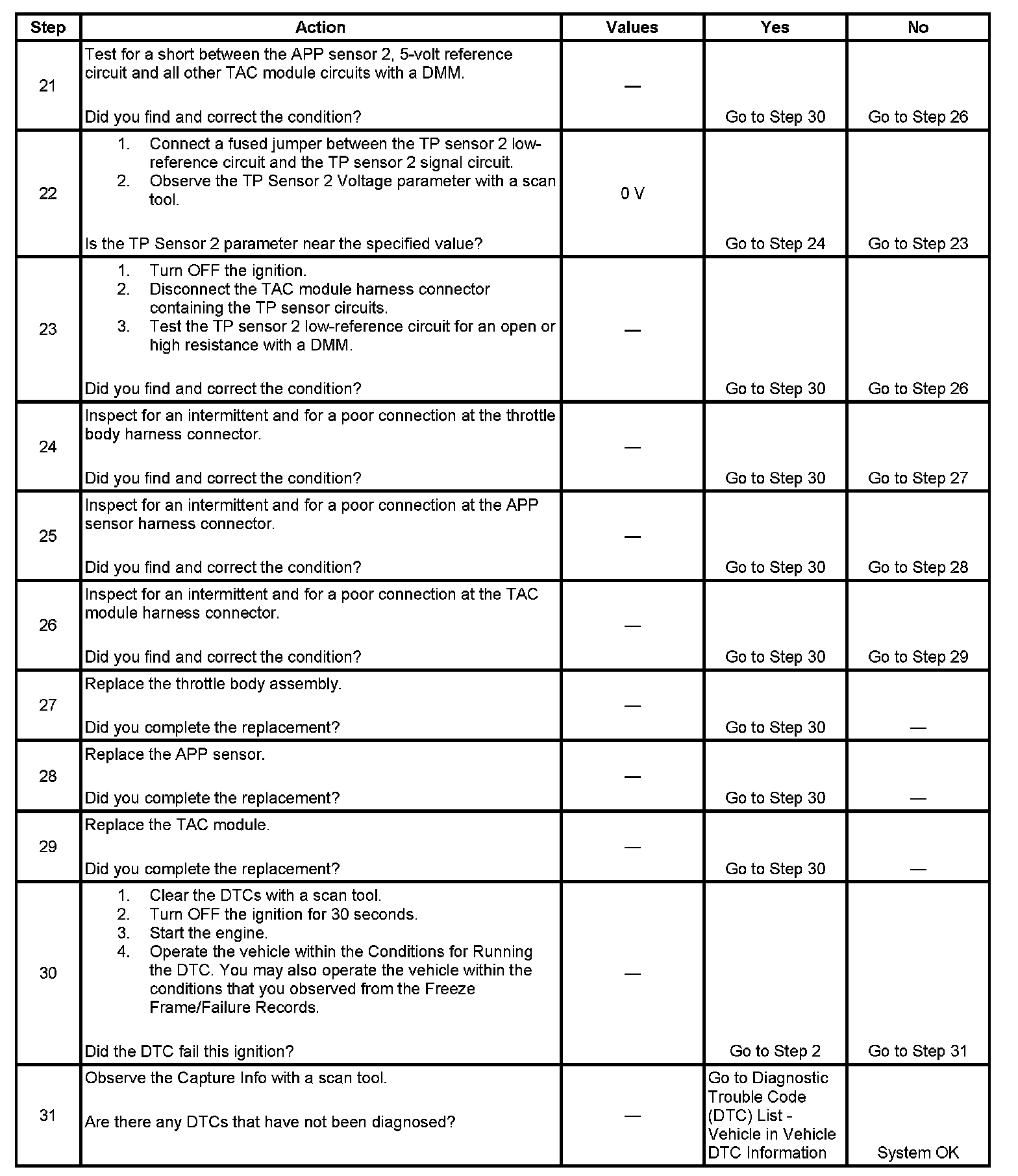 31. When the TAC module detects a condition within the TAC System, more than one TAC System related DTC may set. This is due to the many redundant tests run continuously on this system. Locating and repairing one individual condition may correct more than one DTC. Disconnecting components during testing may set additional DTCs. Keep this in mind when reviewing the stored information, Capture Info.