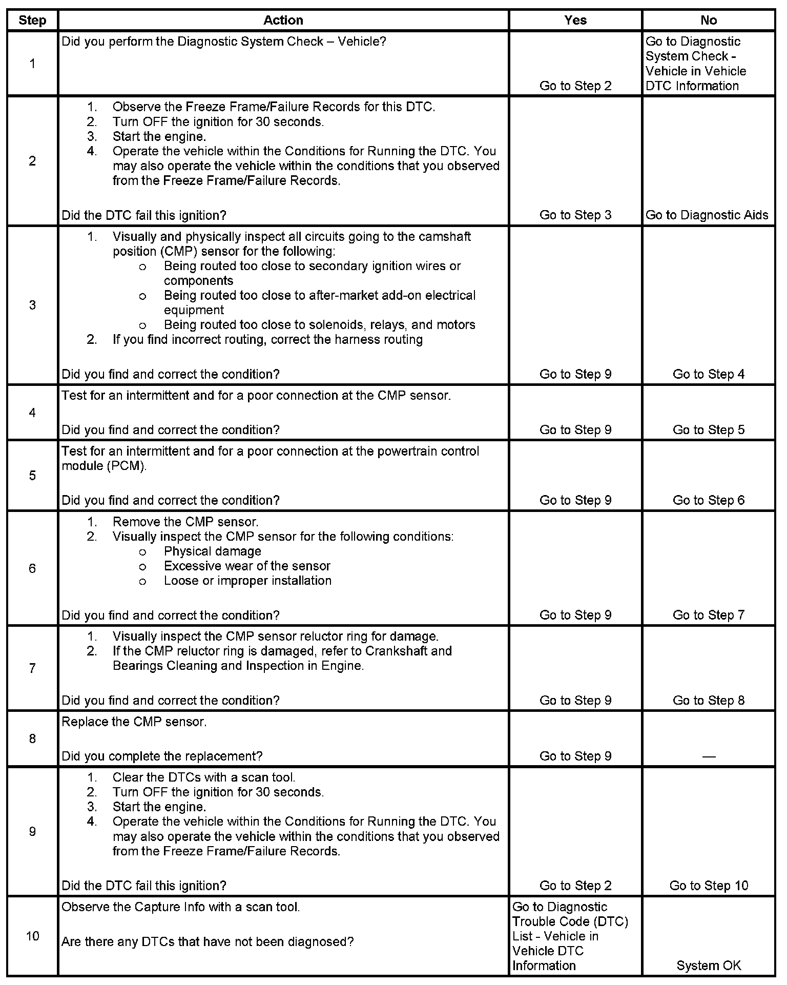 DTC P0341 Camshaft Position (CMP) Sensor Performance