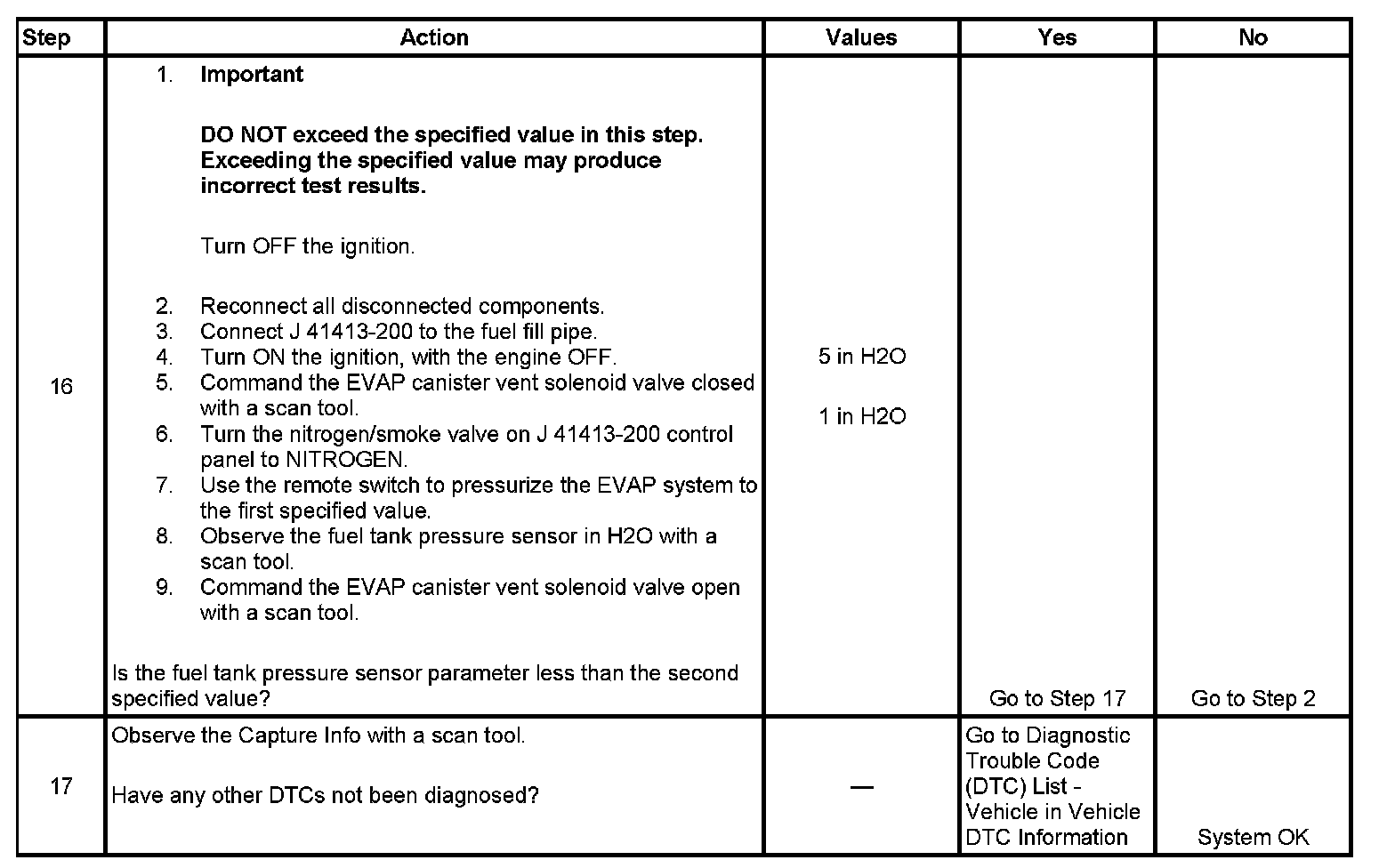 - When using the electronic emission system tester (EEST) to apply pressure, you can regulate the amount of pressure by activating the remote switch ON and OFF while observing pressure in the EVAP system using a scan tool. DO NOT use more than 5 in H2O. More than 5 in H2O applied to the EVAP system can cause the canister vent solenoid valve to temporarily remain in the closed position, which could lead to misdiagnosis in this procedure.