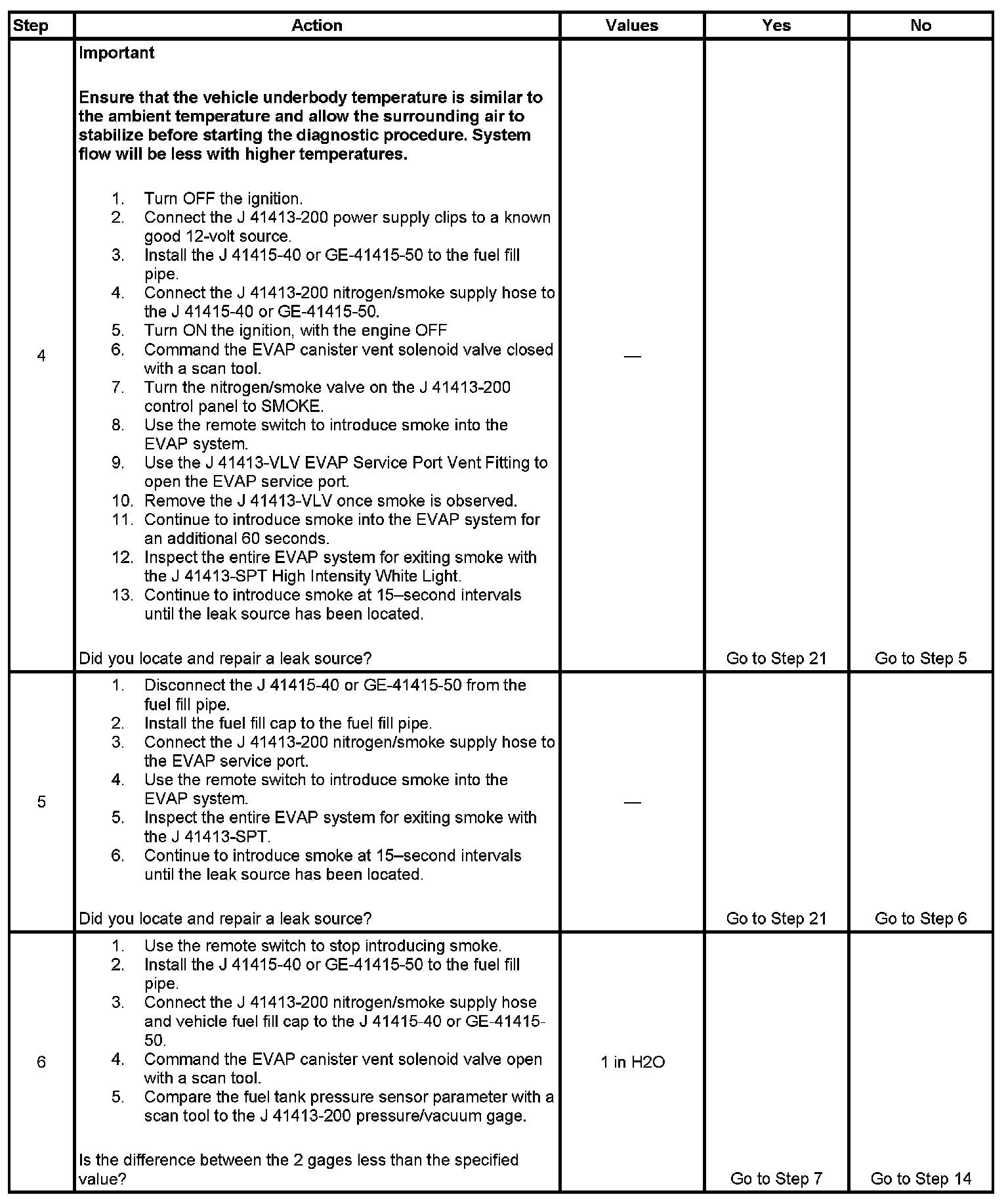 - To help locate intermittent leaks, use the J 41413-200 Evaporative Emissions System Tester (EEST) to introduce smoke into the EVAP system. Move all EVAP components while observing smoke with the J 41413-SPT High Intensity White Light. Introducing smoke in 15-second intervals will allow less pressure into the EVAP system. When the system is less pressurized, the smoke will sometimes escape in a more condensed manner.