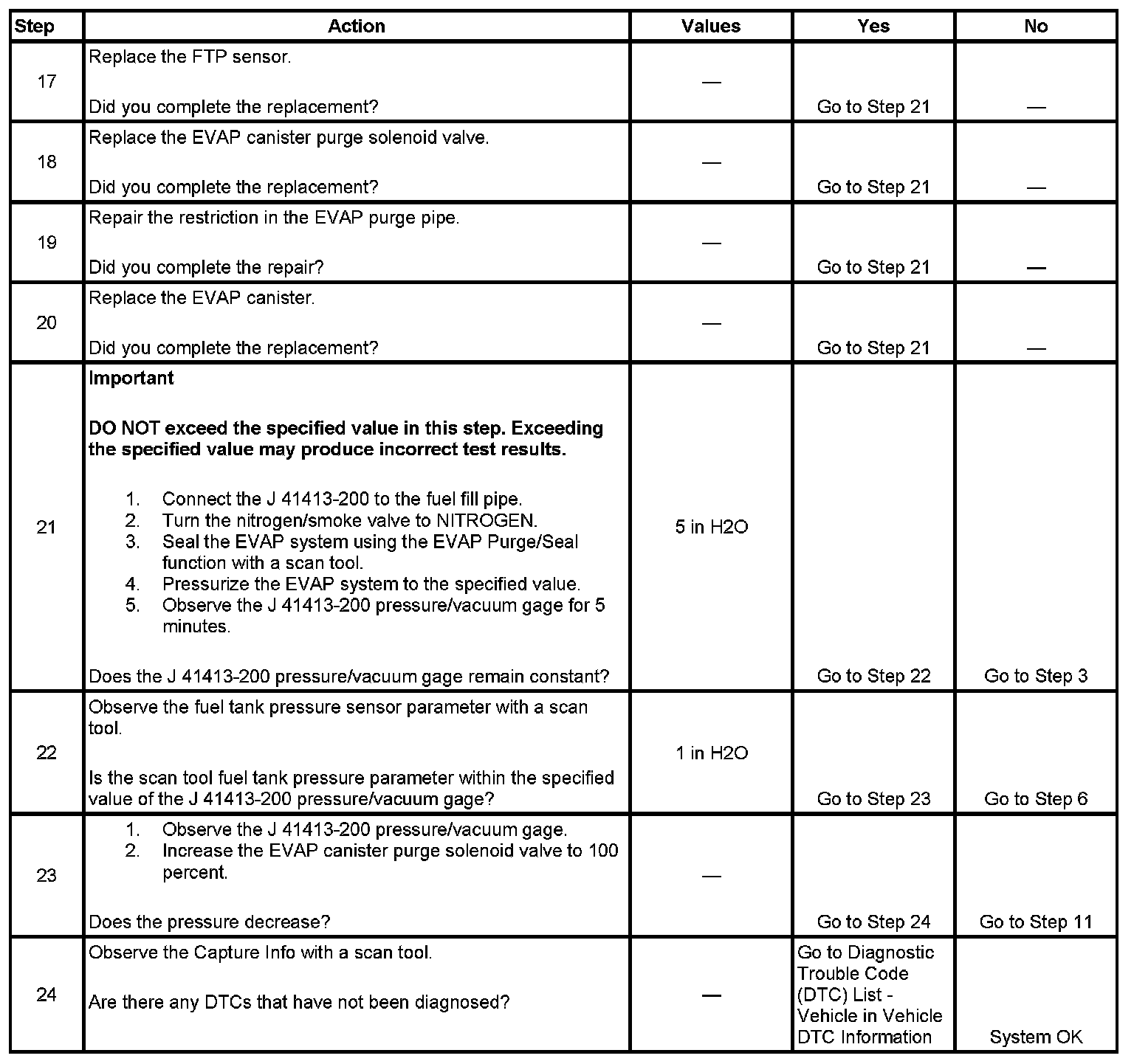 - DTCs P0106, P0107, P0108, P0112, P0113, P0116, P0117, P0118, P0120, P0121, P0122, P0123, P0125, P0131, P0132, P0133, P0134, P0135, P0136, P0137, P0138, P0140, P0141, P0151, P0152, P0153, P0154, P0155, P0156, P0157, P0158, P0160, P0161, P0220, P0442, P0443, P0449, P0451, P0452, P0453, P0454, P0464, P0496, P0502, P0503, P1111, P1112, P1114, P1115, P1125, P1122, P1121, P2135 are not set.