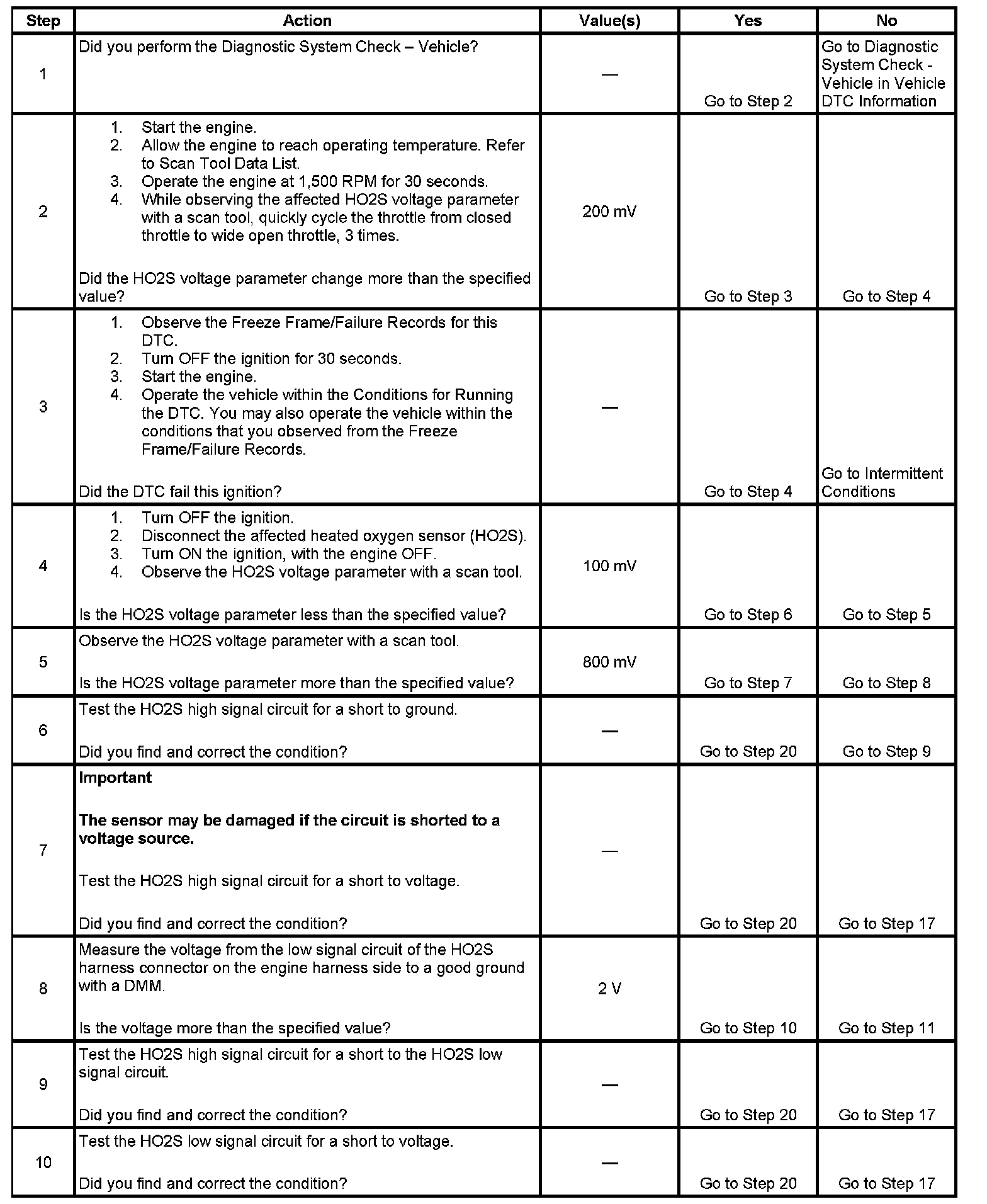 2. If the voltage does not change more than the specified value, the condition is present.