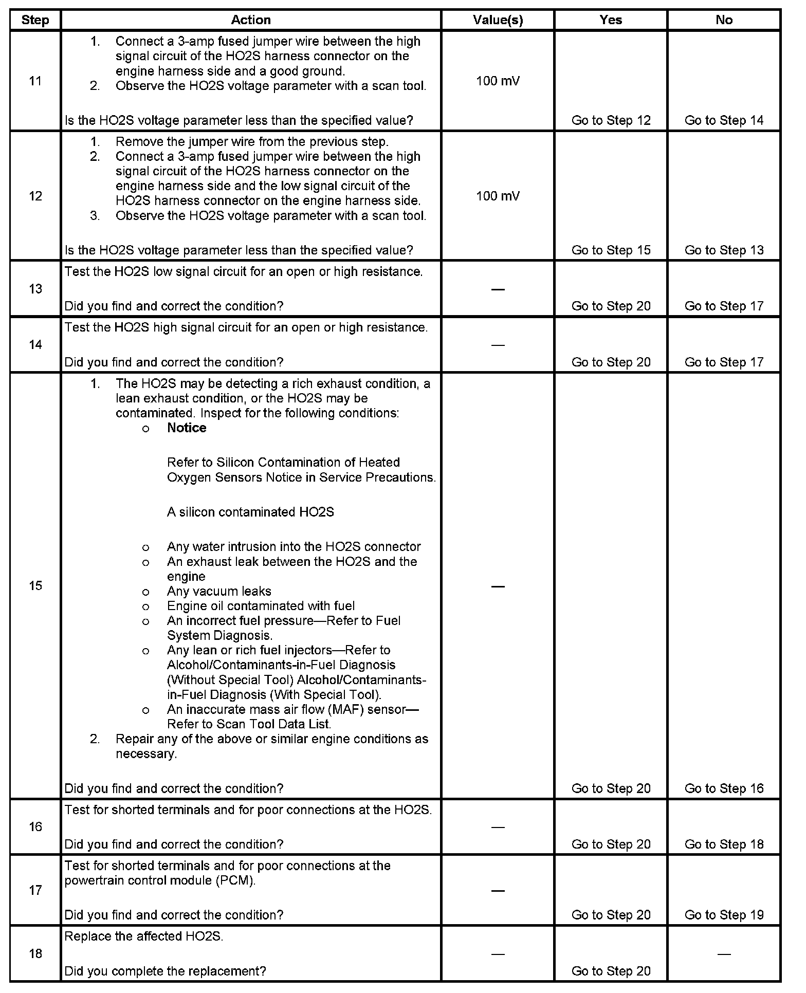 - The PCM detects that the HO2S bank 1 sensor 2 or HO2S bank 2 sensor 2 is less than710 mV for 60 seconds.