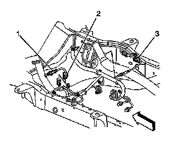3. Disconnect the heated oxygen sensor (HO2S) sensor electrical connector (1).