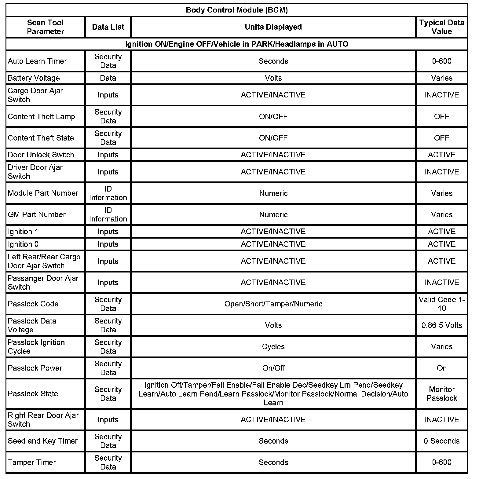 Scan Tool Data List - Antitheft System