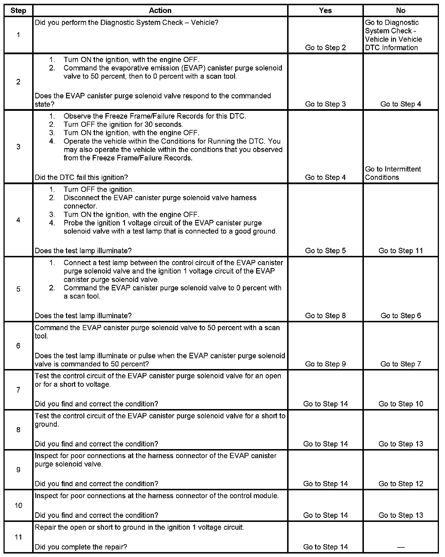 6. This step tests if a ground is constantly being applied to the EVAP canister purge solenoid valve.
