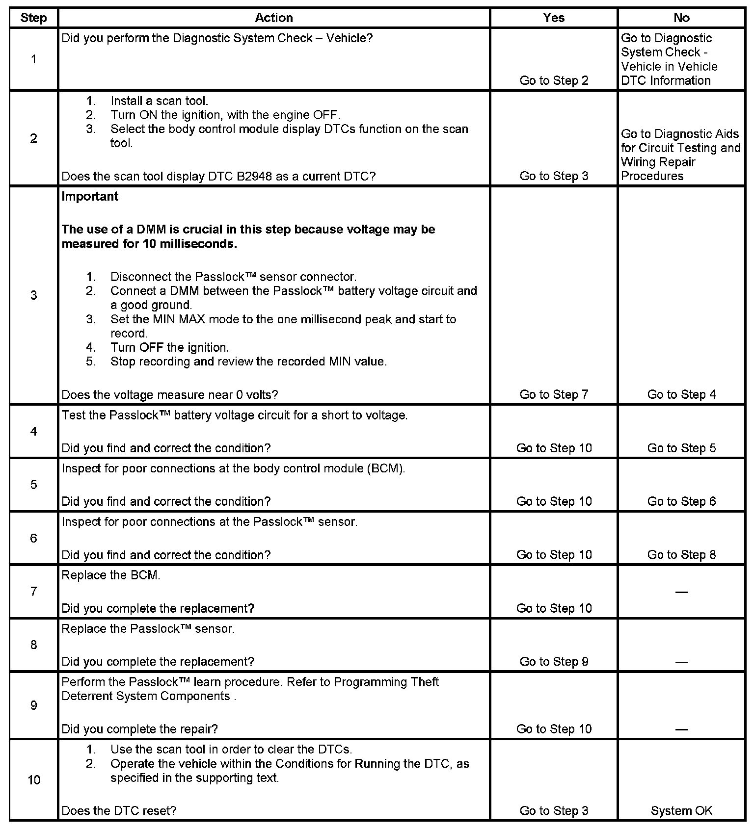 - When a short to battery is no longer present on the Passlock(TM) sensor power circuit, the ignition switch must be cycled from OFF to ON before this DTC can change from a current DTC to a history DTC.
