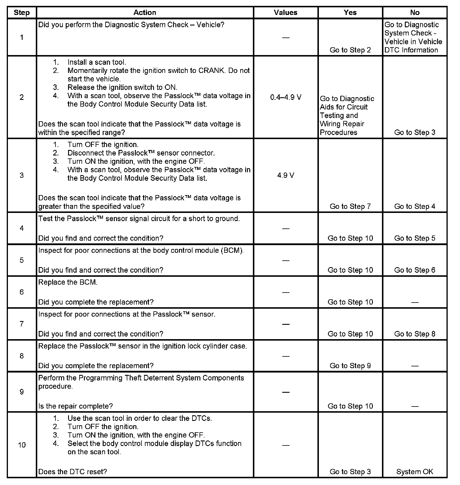 - Inspect the Passlock(TM) sensor harness for an intermittent or a short to ground.