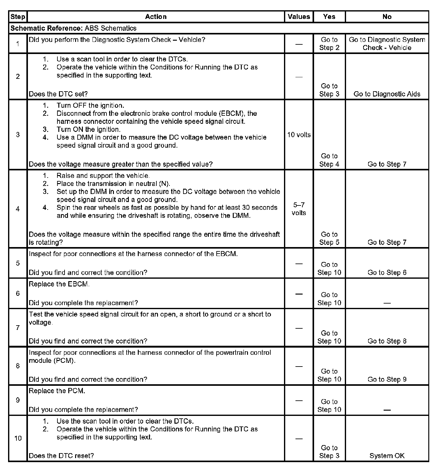 4. This step tests for a missing or erratic vehicle speed signal from the PCM. An assistant may be required to perform this test.