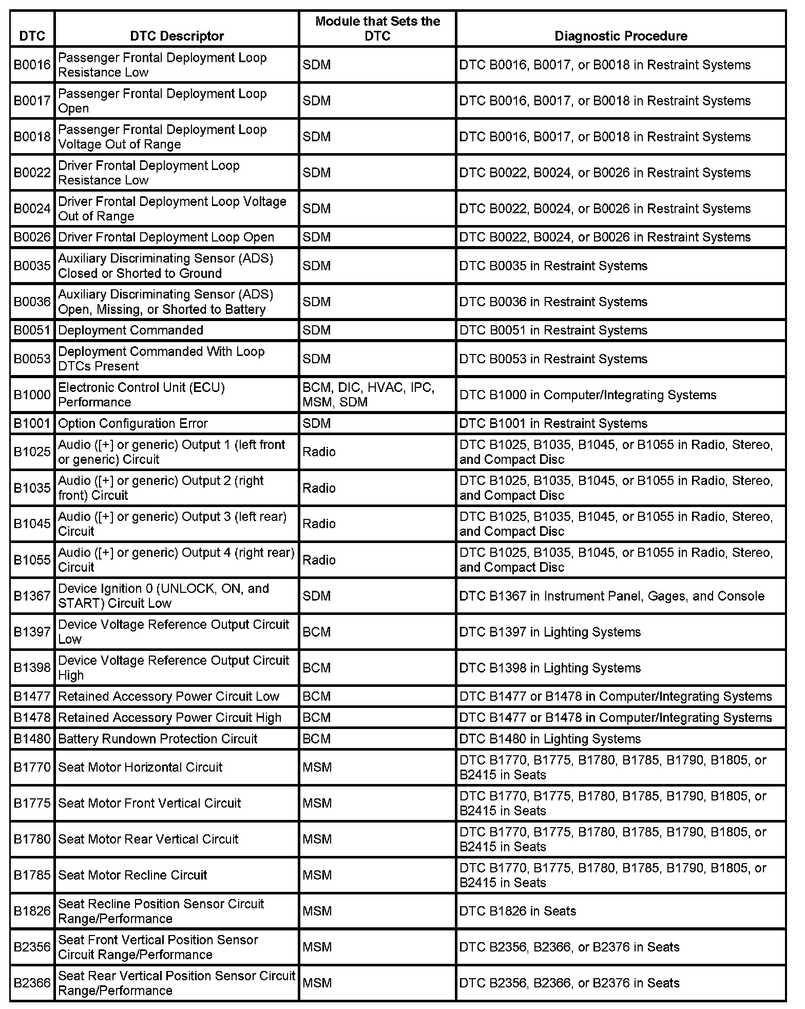 DTC's B0016 - B2366:
