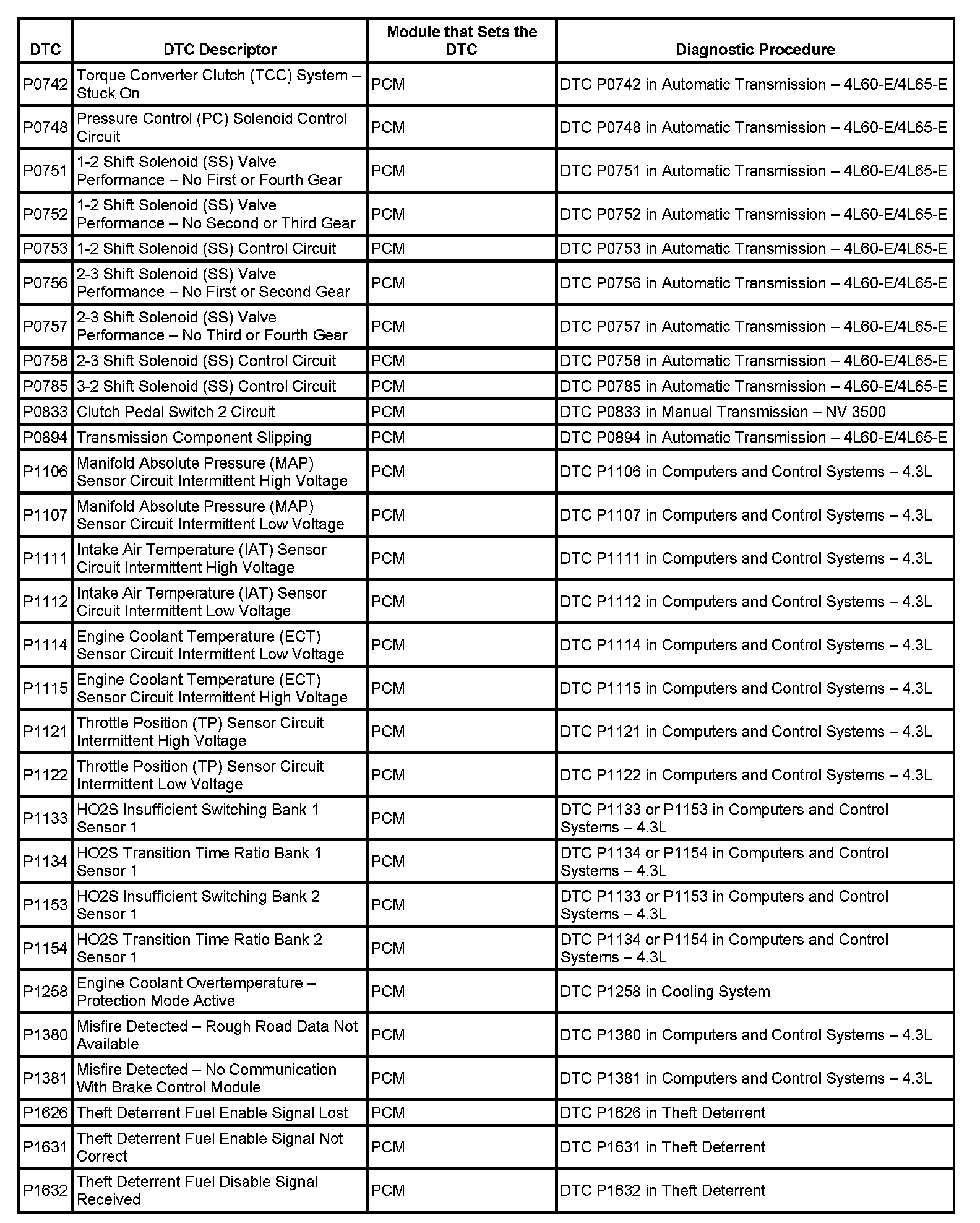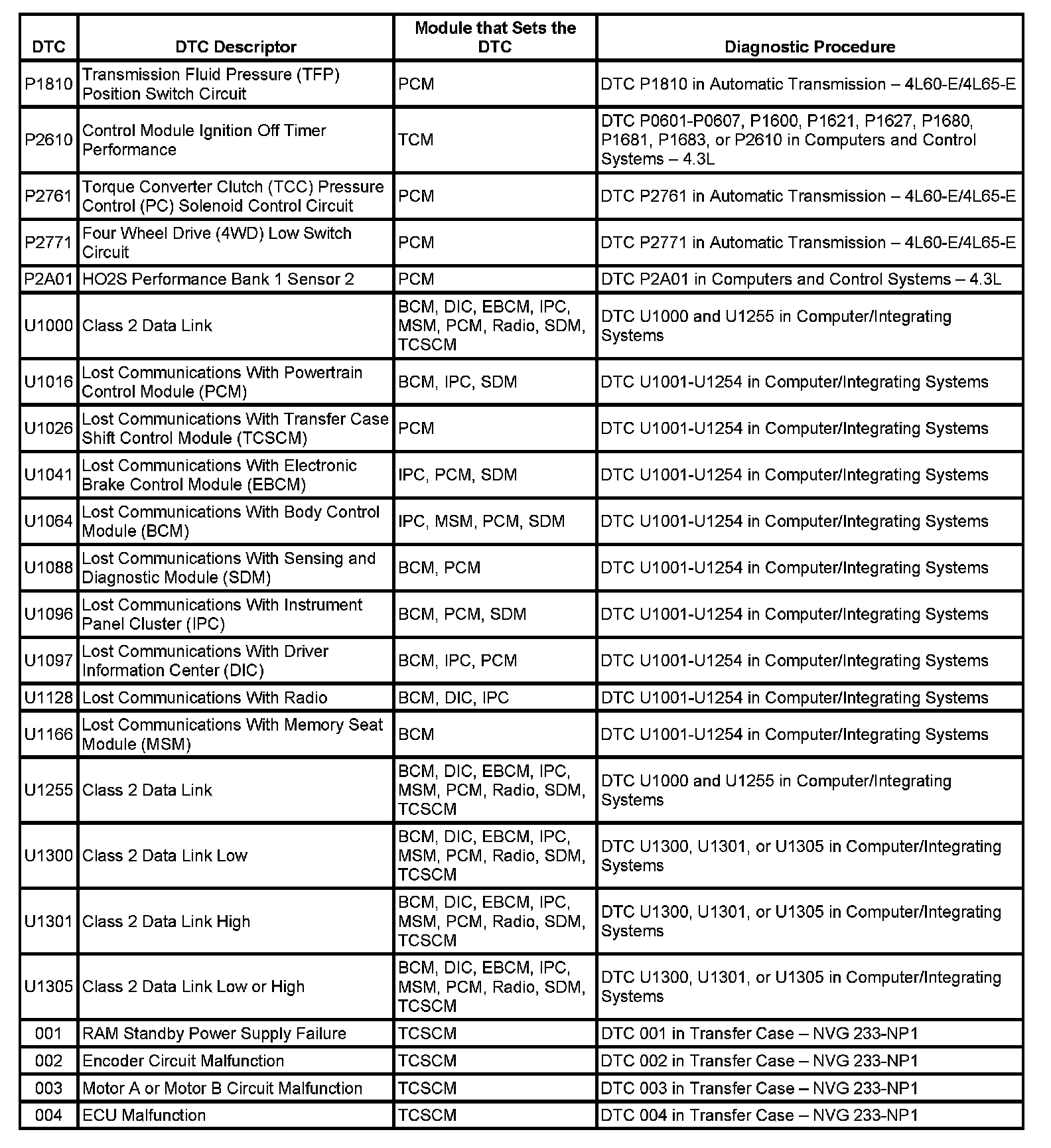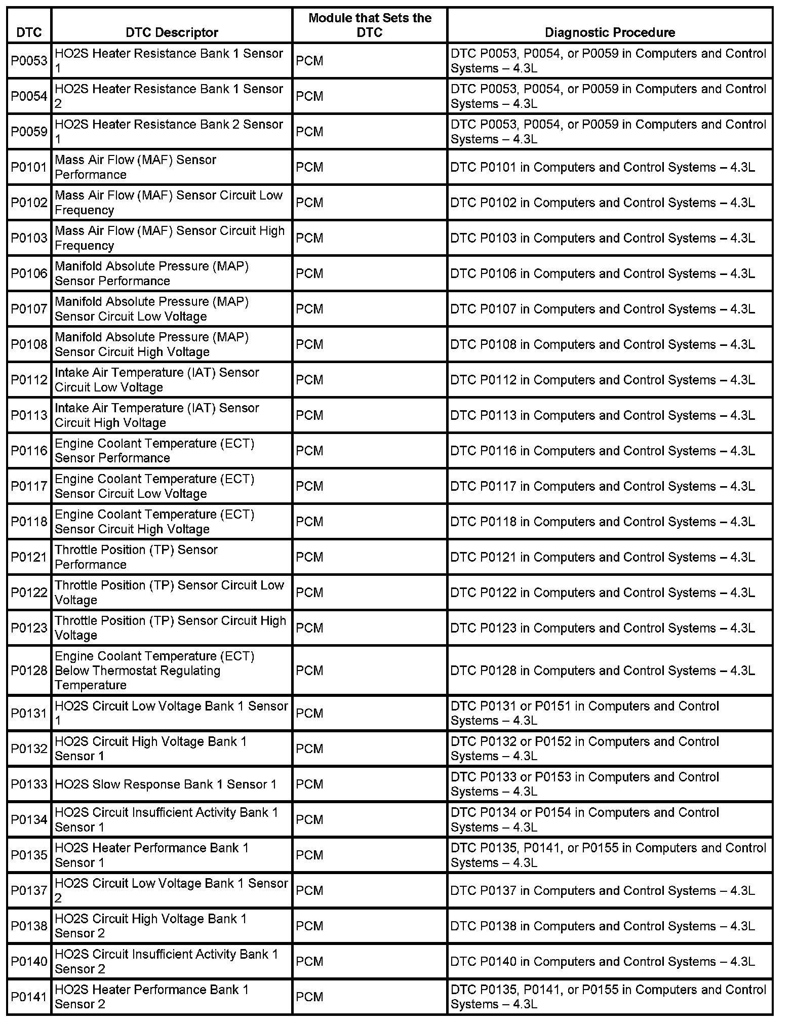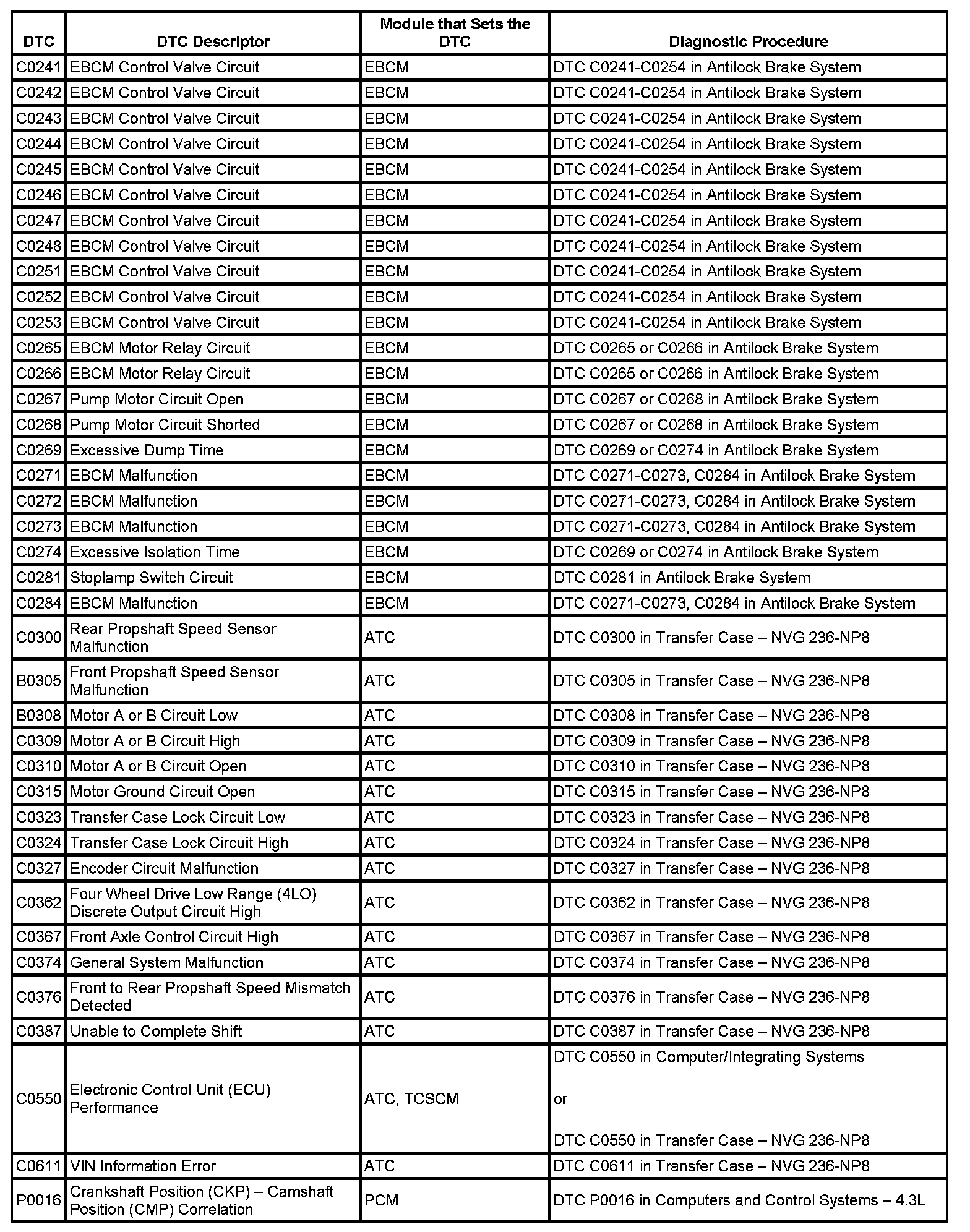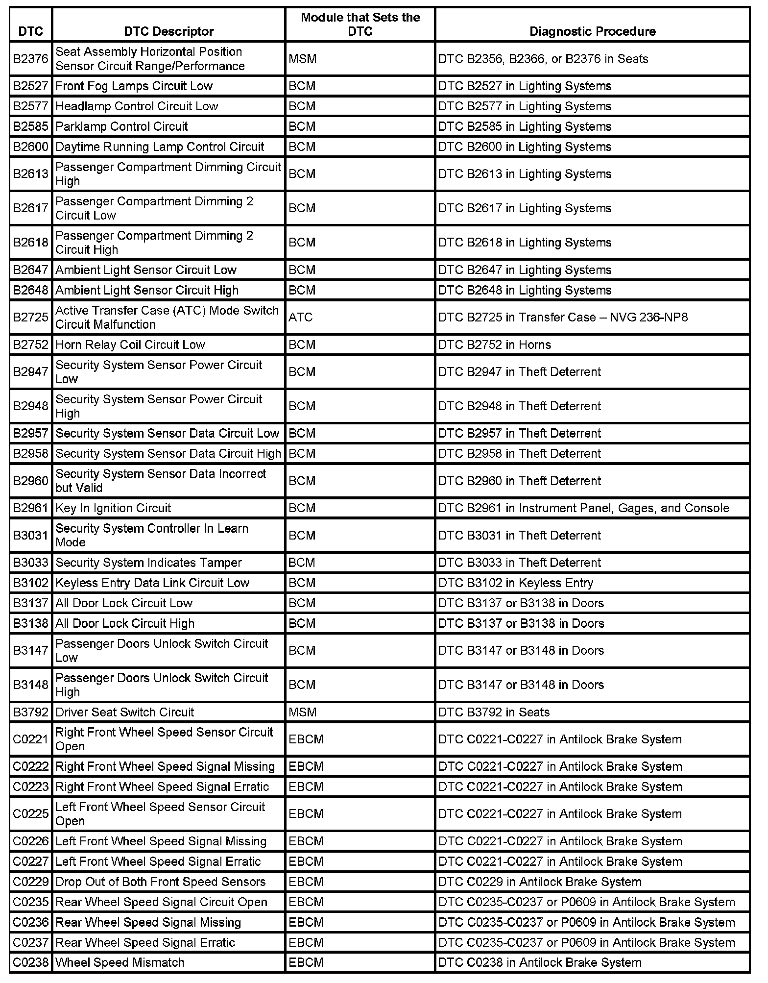 This master DTC list includes all applicable DTCs in alphanumeric order with descriptors.