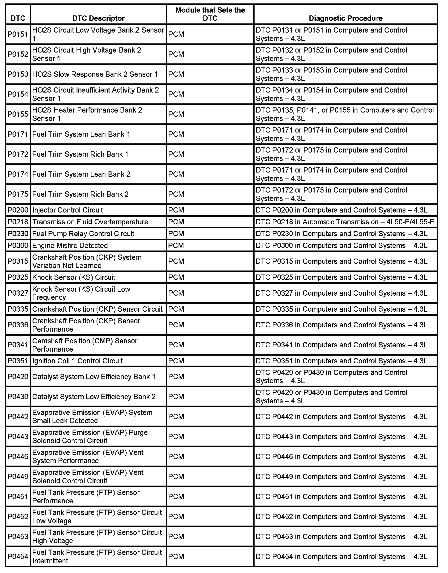DTC's P0151 - P0454: