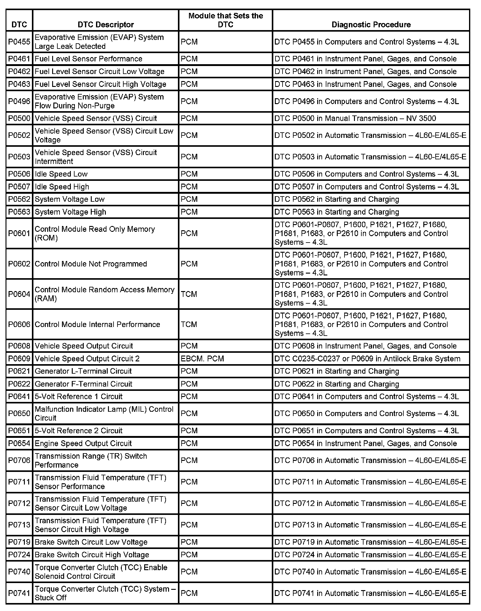 DTC's P0455 - P0741: