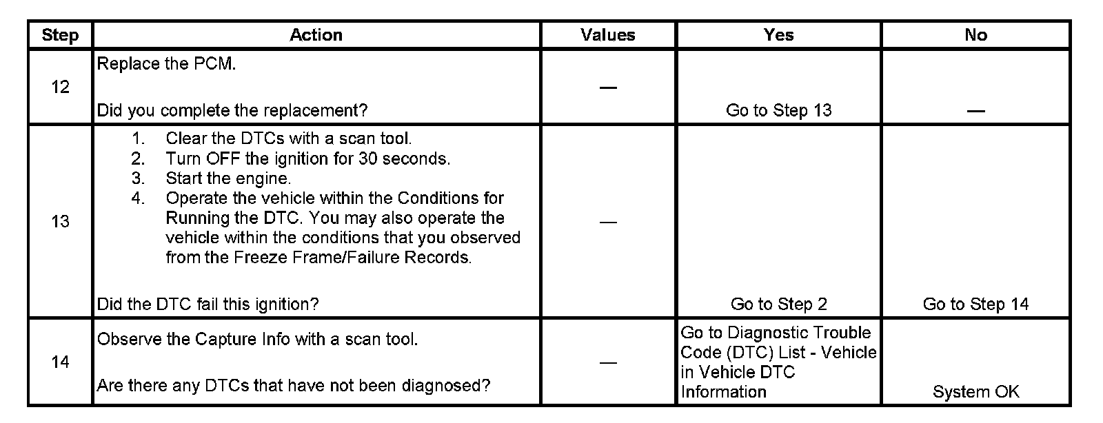 - A current DTC, Last Test Failed, clears when the diagnostic runs and passes.