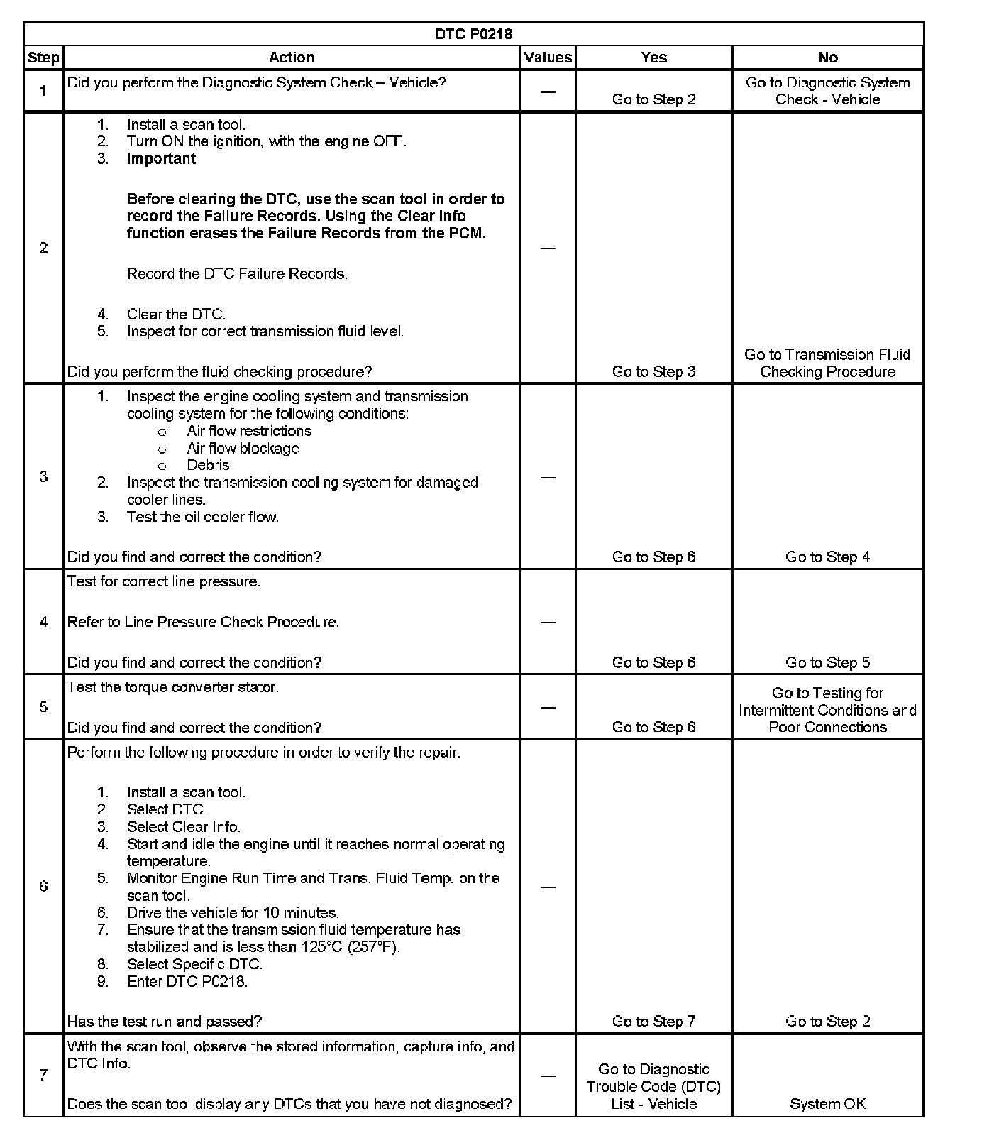 When the powertrain control module (PCM) detects a high transmission fluid temperature (TFT) for a long period of time, then DTC P0218 sets. DTC P0218 is a type C DTC.