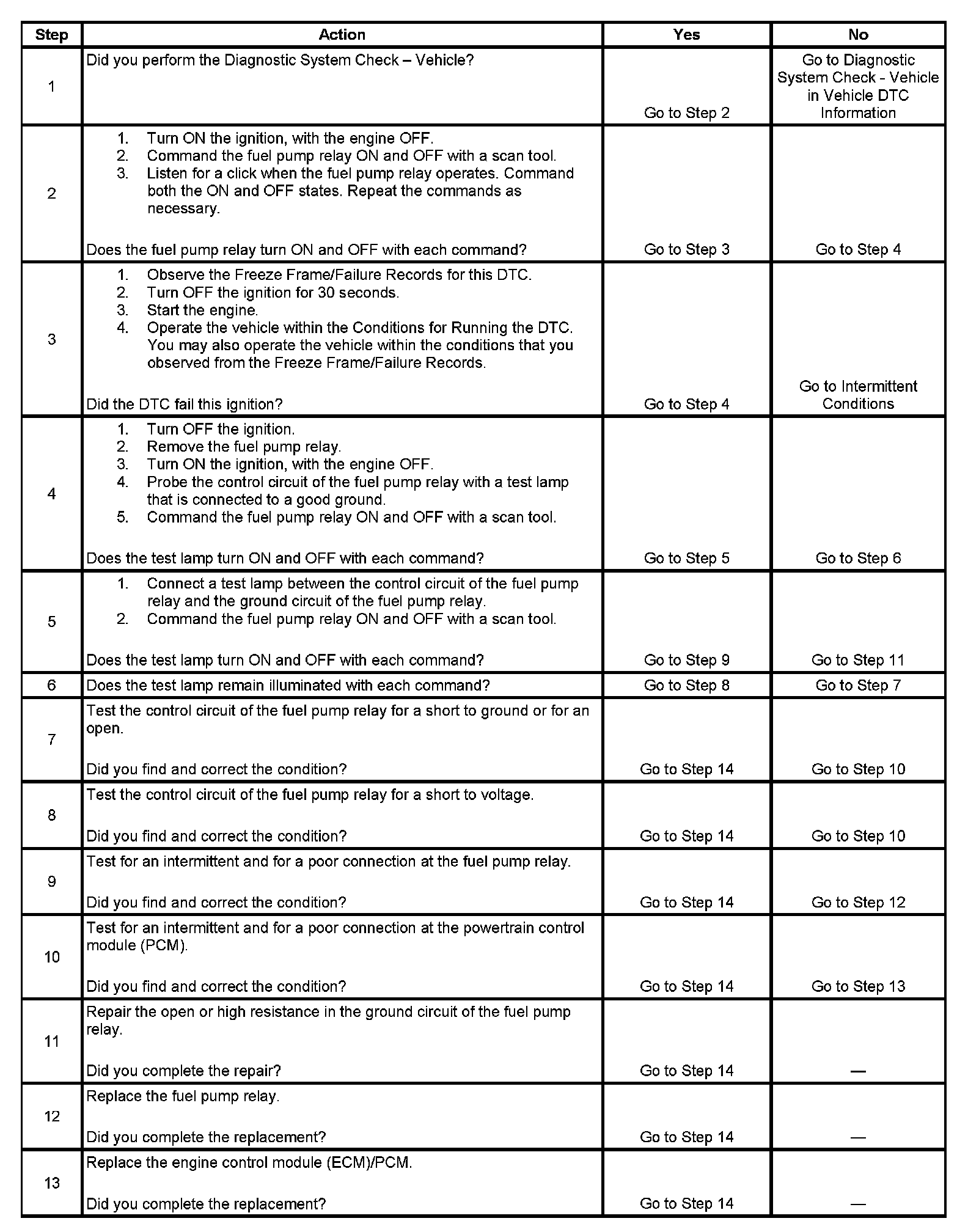 DTC P0230 Fuel Pump Relay Control Circuit