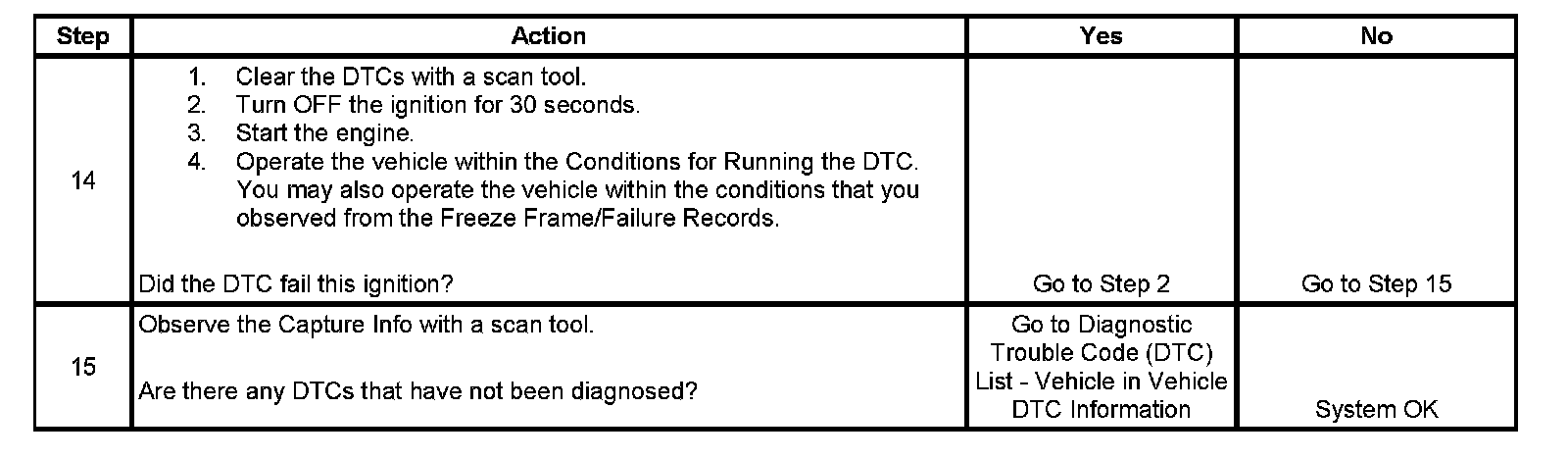 - A current DTC, Last Test Failed, clears when the diagnostic runs and passes.