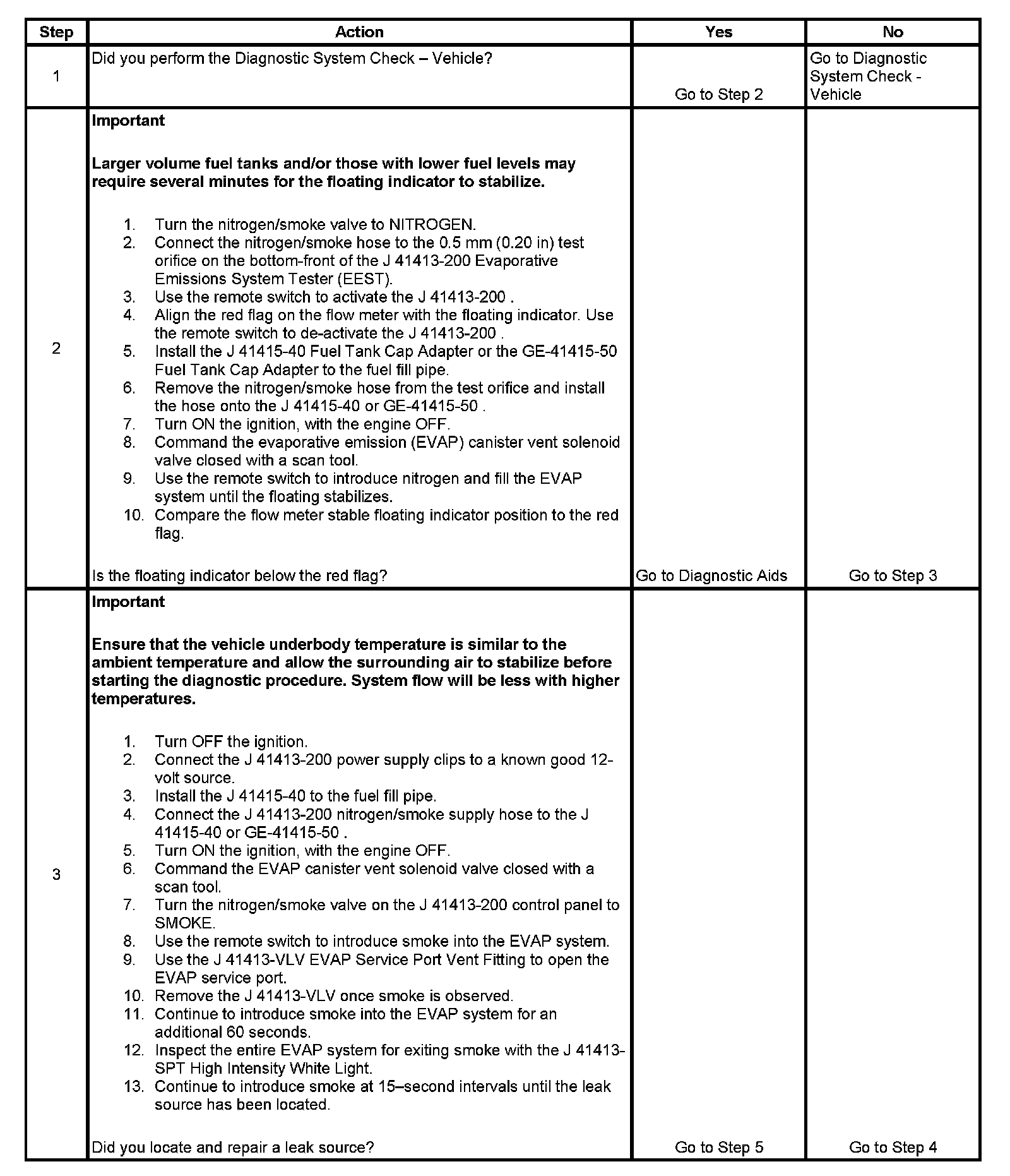 - To help locate intermittent leaks, use the J 41413-200 Evaporative Emissions System Tester (EEST) to introduce smoke into the EVAP system. Move all EVAP components while observing smoke with the J 41413-SPT High Intensity White Light.