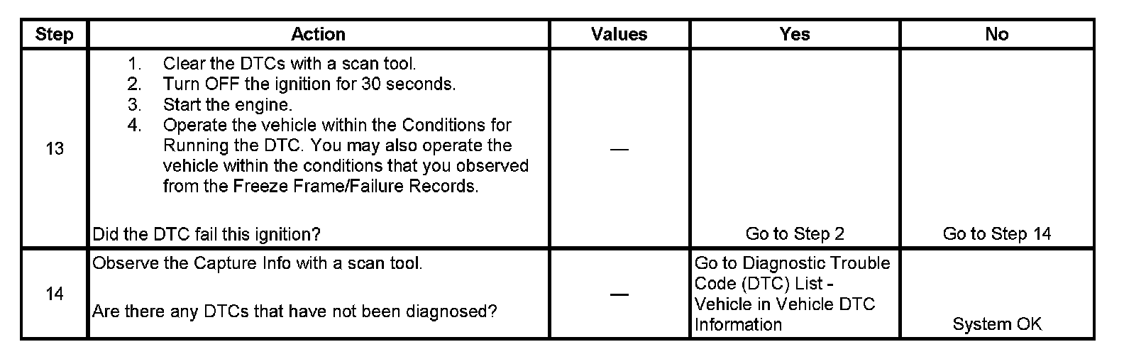 - A current DTC, Last Test Failed, clears when the diagnostic runs and passes.