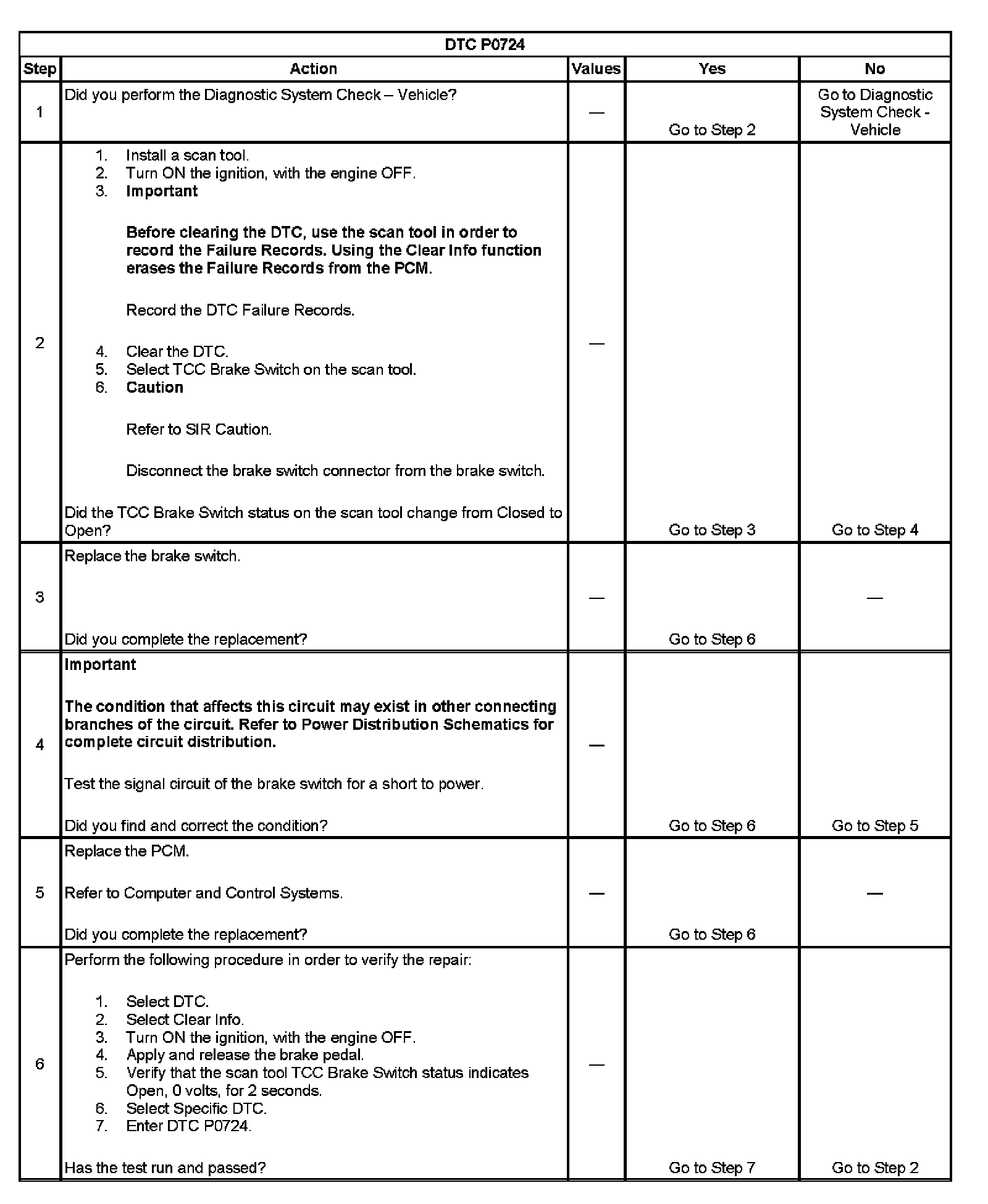 ^ The PCM stores DTC P0724 in PCM history.