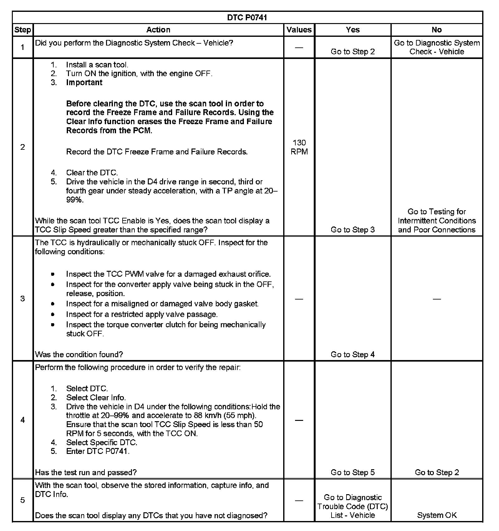 When the PCM detects a high TCC slip speed when the PCM commands the TCC ON, then DTC P0741 sets. DTC P0741 is a type B DTC.