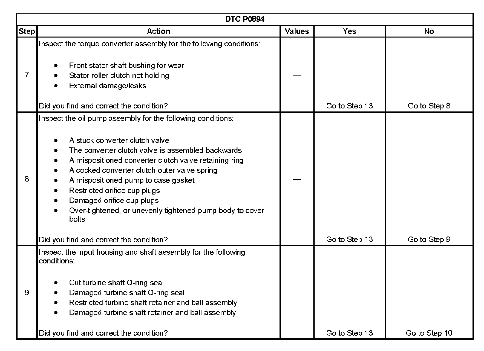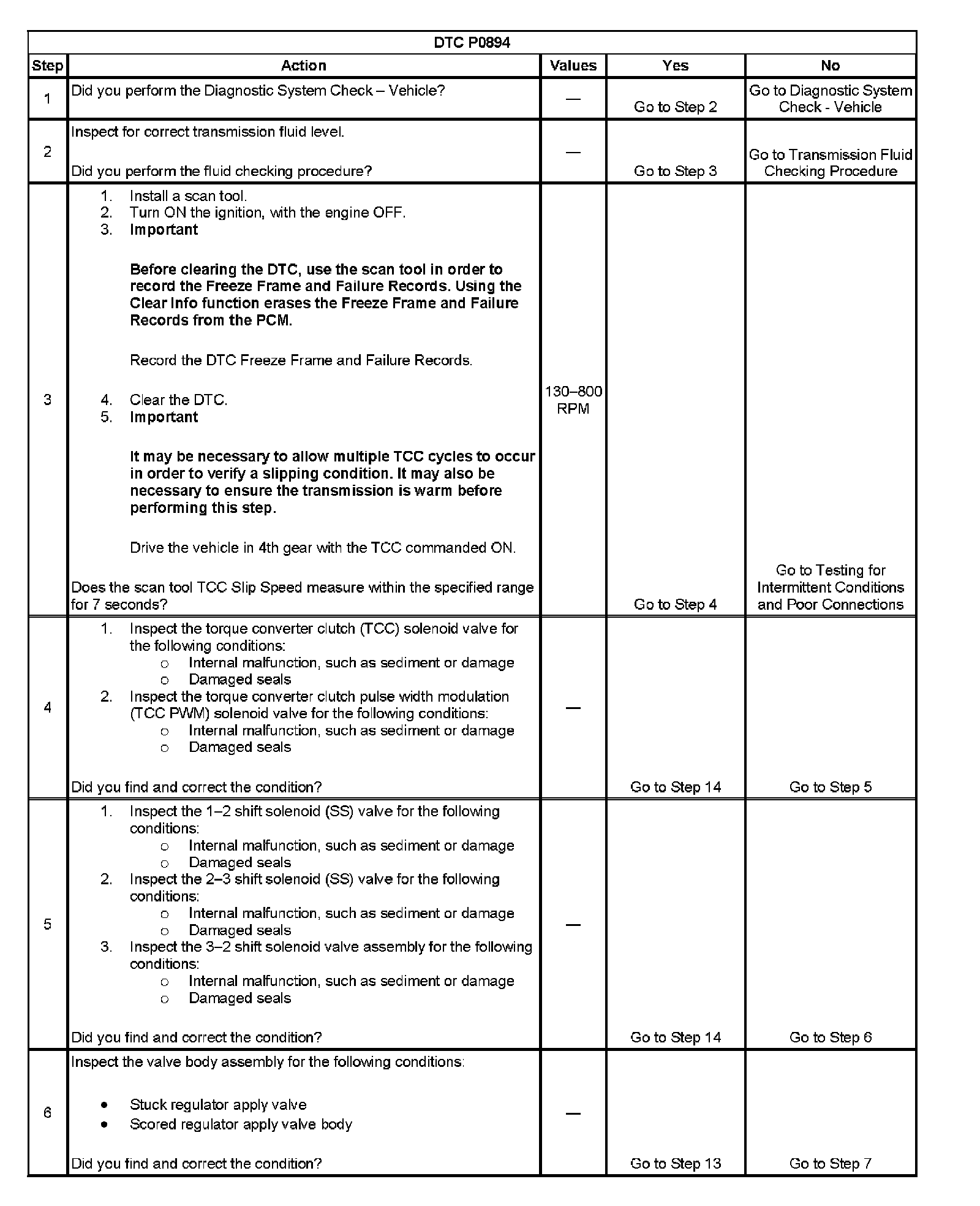 When the PCM detects excessive TCC slip when the TCC should be engaged, then DTC P0894 sets. DTC P0894 is a type B DTC.