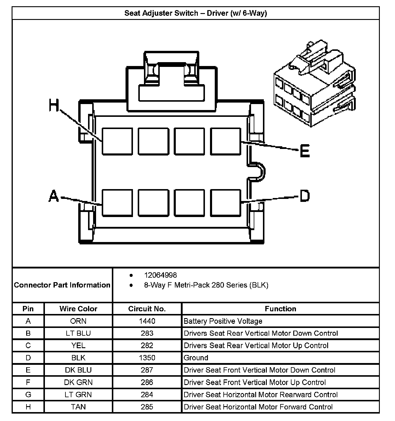Seat Adjuster Switch - Driver (w/ 6-Way):