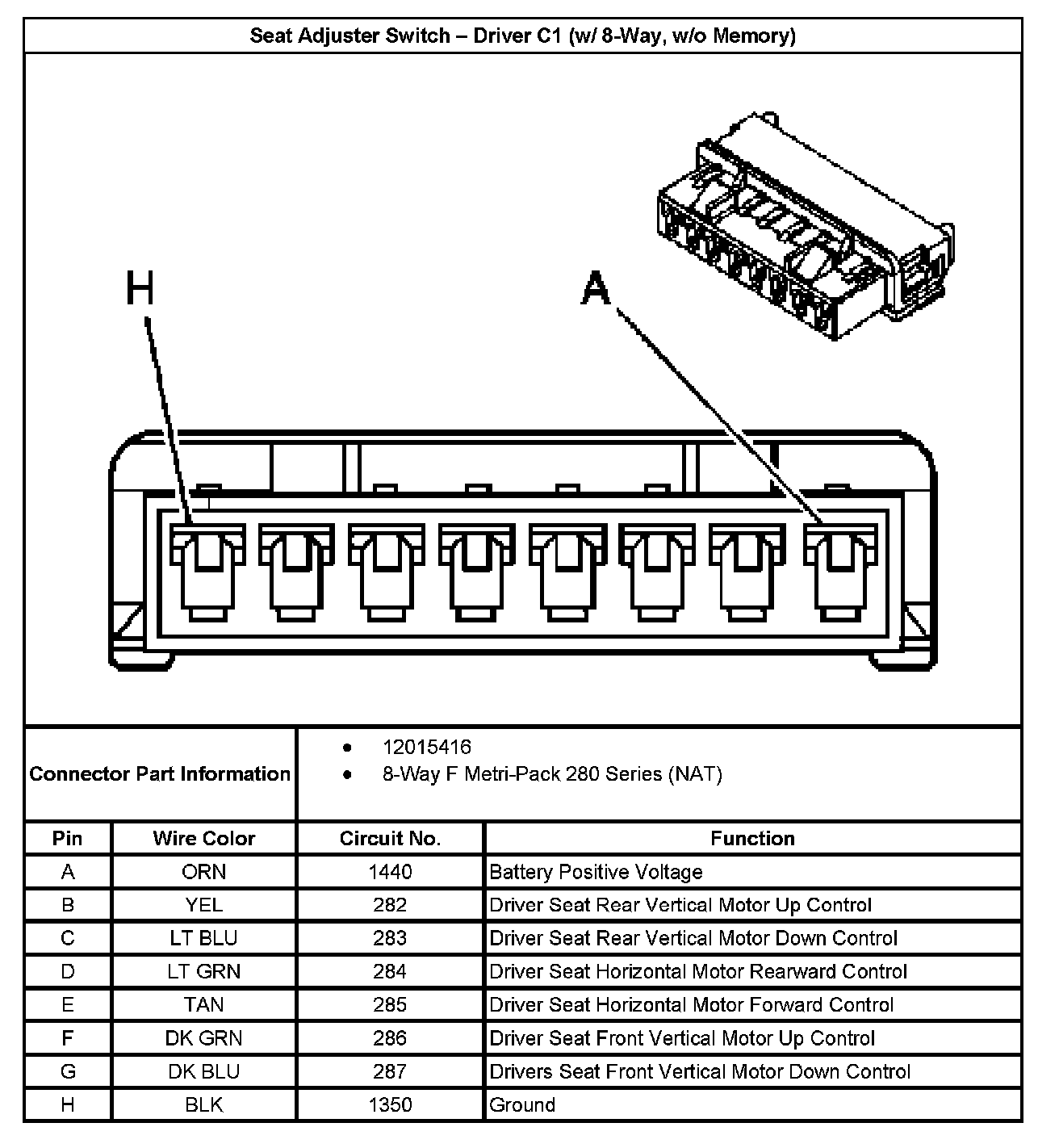 Seat Adjuster Switch - Driver C1 (w/ 8-Way, w/o Memory):