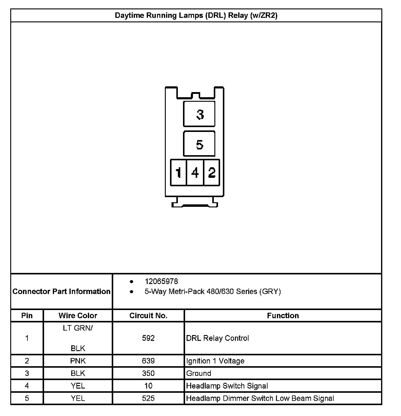 Daytime Running Lamps (DRL) Relay (With RPO Code ZR2):