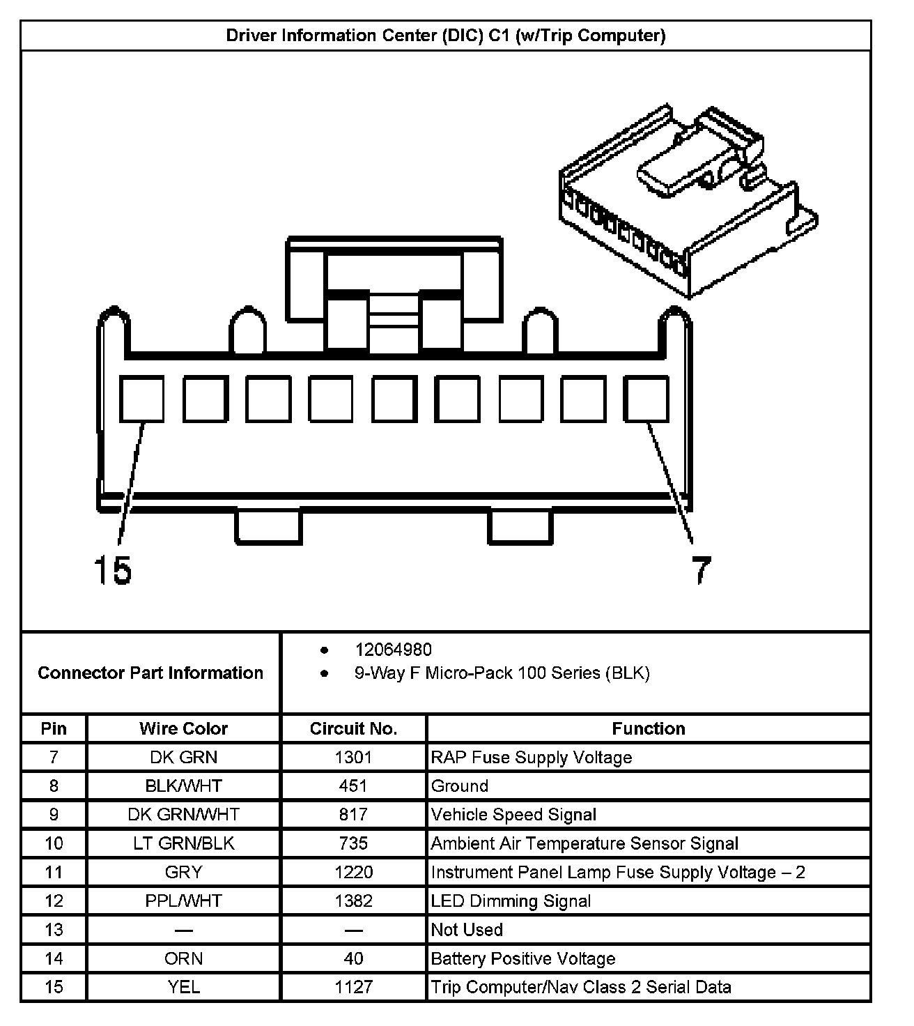 Driver Information Center (DIC) C1 (w/Trip Computer):