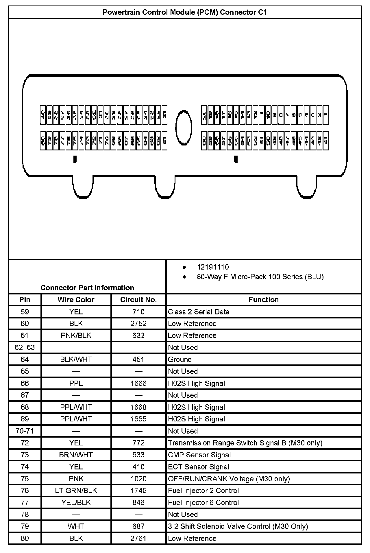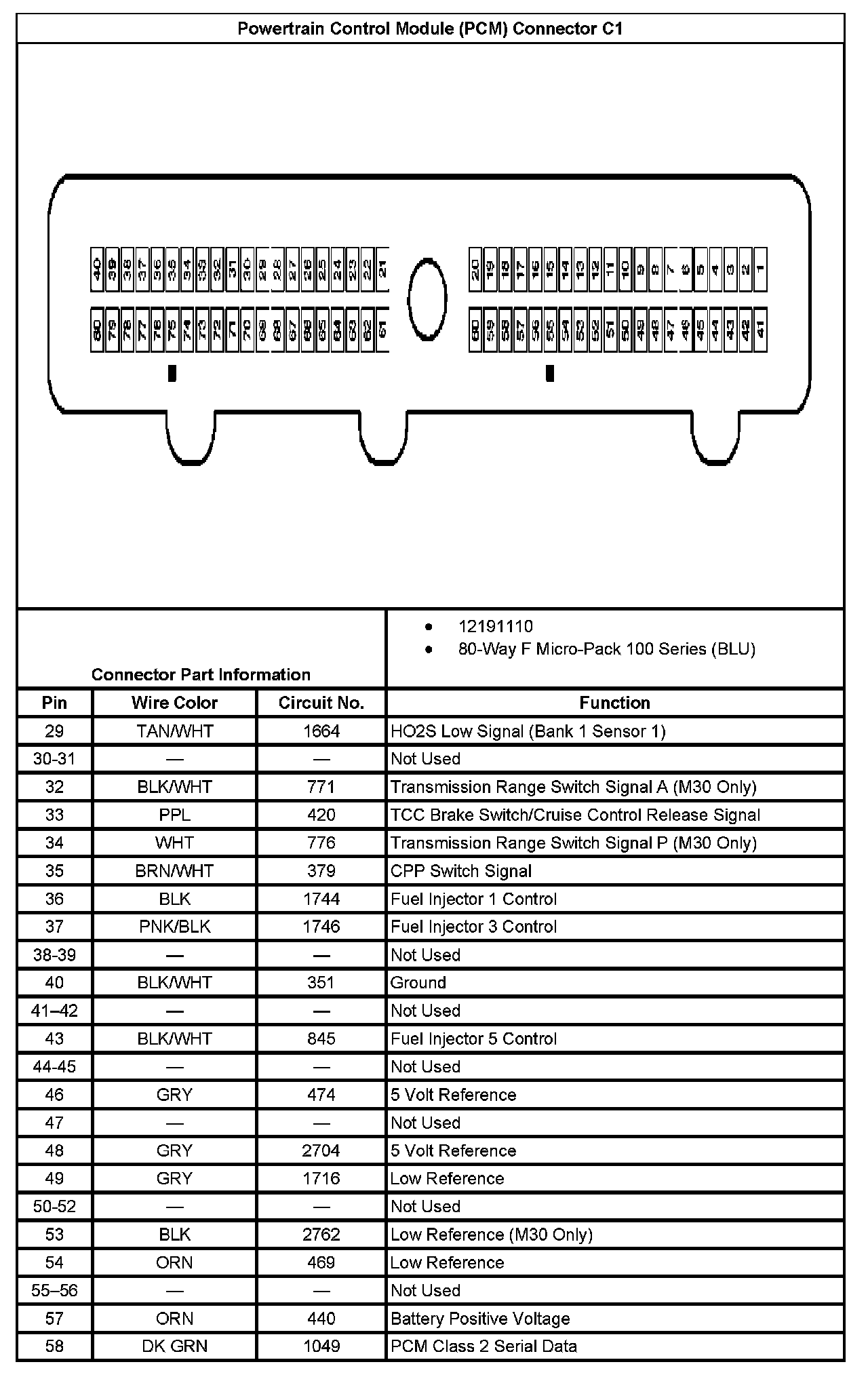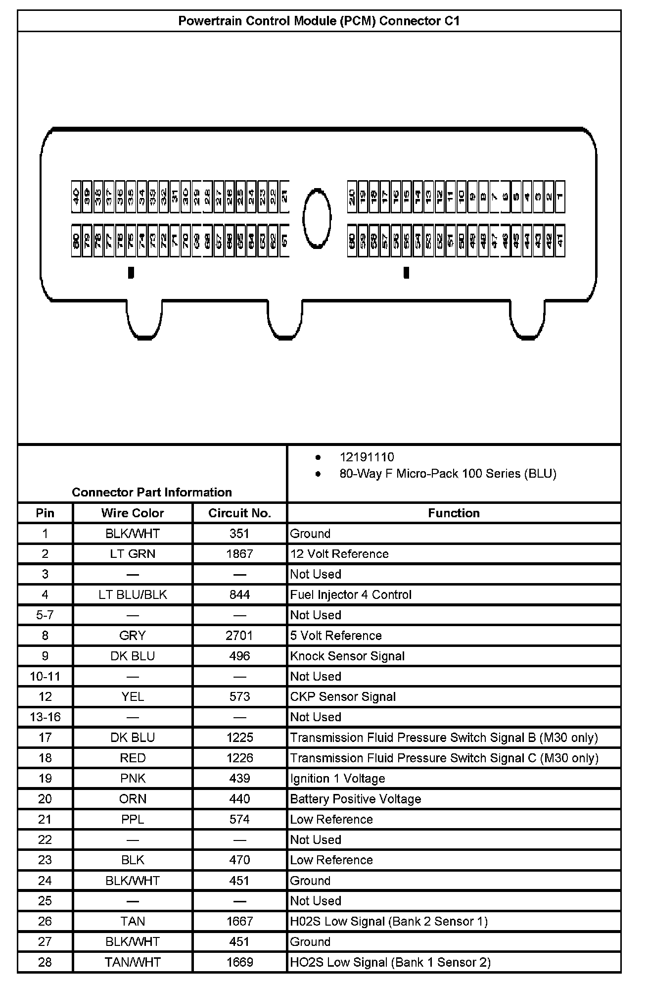Powertrain Control Module (PCM) Connector C1 Part 3: